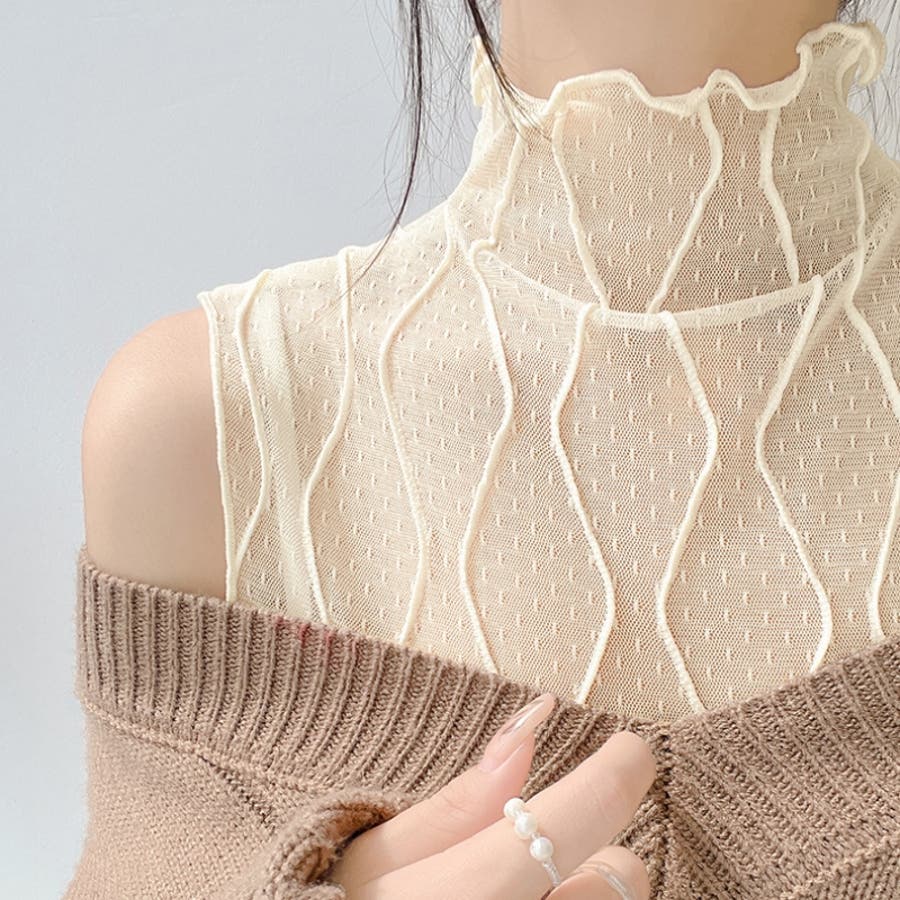 ハイネック仕様で首元をすっきり見せながら、フリル仕立てで程よい甘さをプラスしました。