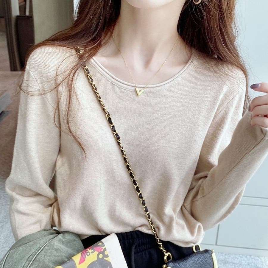 生地が柔らかくて肌触りがとても良いです。軽いのにしっかり暖かいのでこれからの季節にぴったり。首元の開き具合も程よく女性らしく見えます。