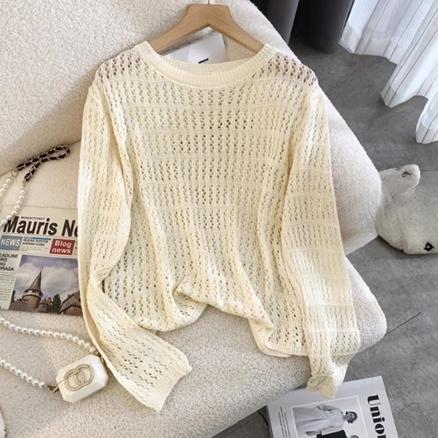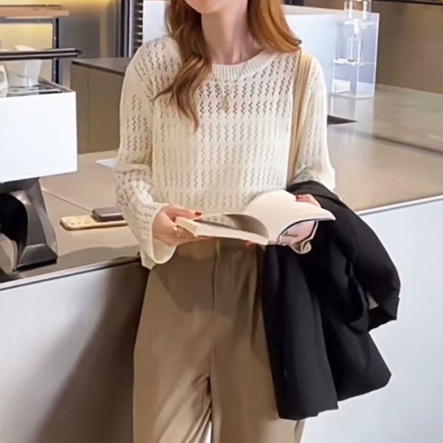 今年らしい程よい透け感が目を惹く女性らしいシアーニットが登場。