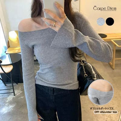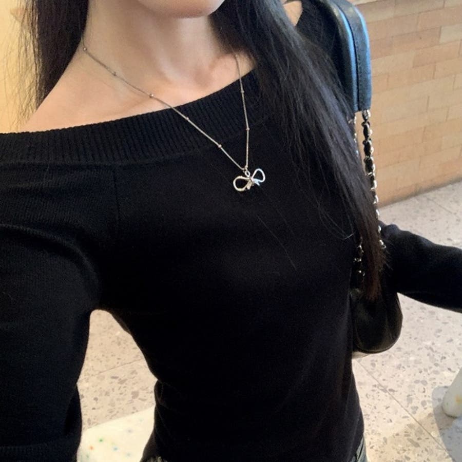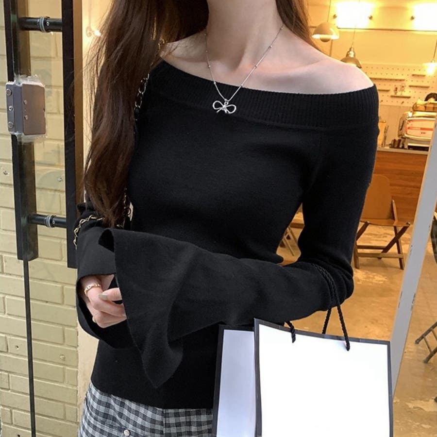 オフショルダートップス 長袖 ニットトップス