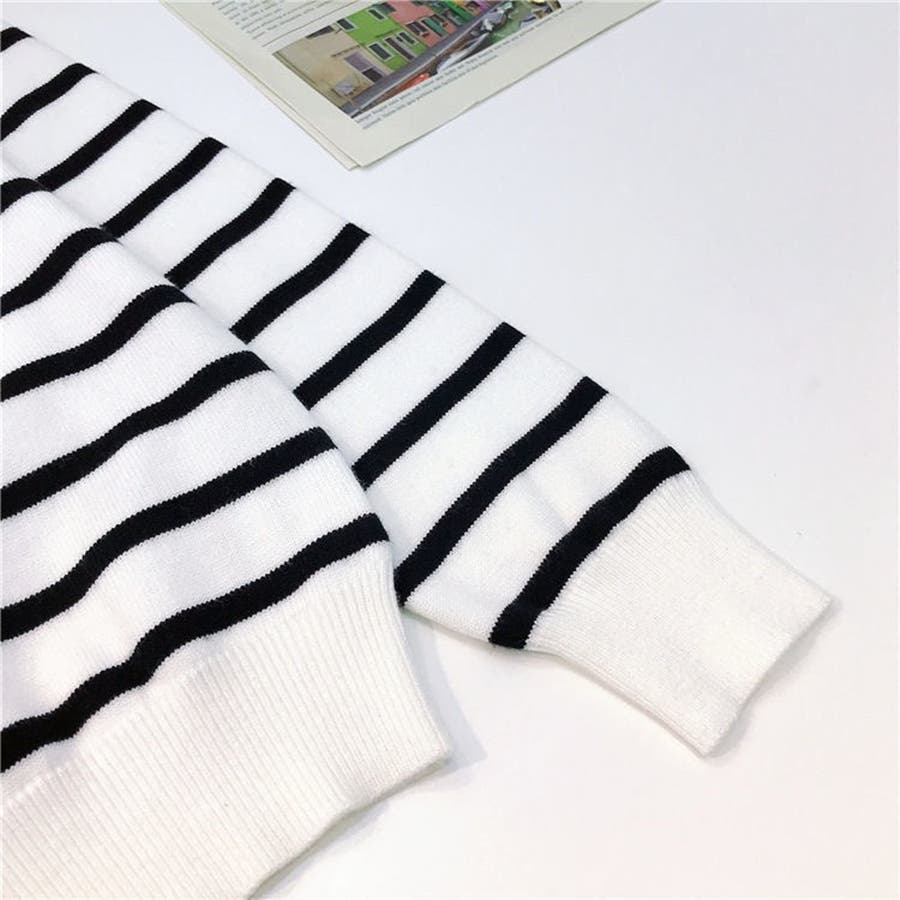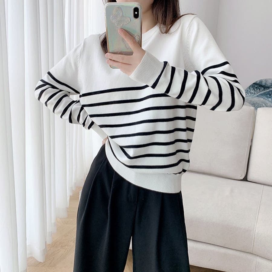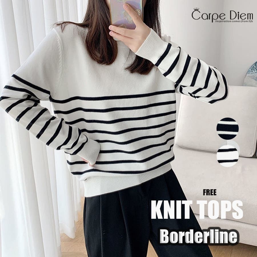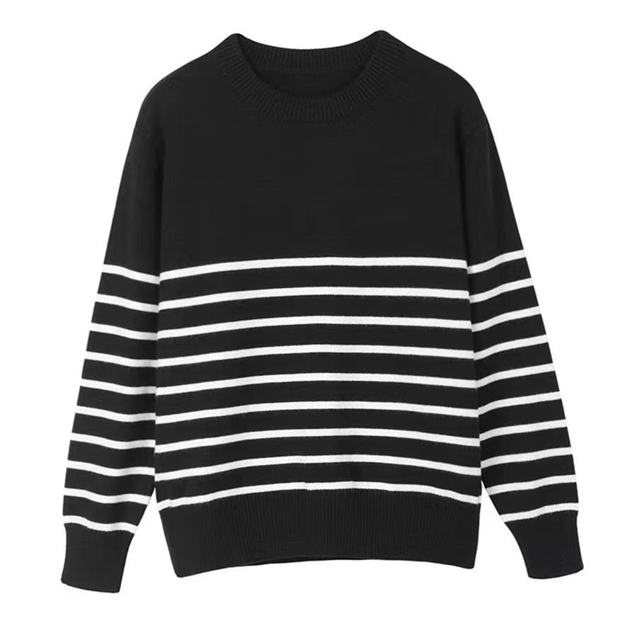 ニット 編みトップス ストライプ 長袖ボーダーニットソー シンプル 長袖 カットソー セーター ボーダー長袖 スト春秋冬 薄手ニット ブラウス スリーブ大人可愛いレイヤード