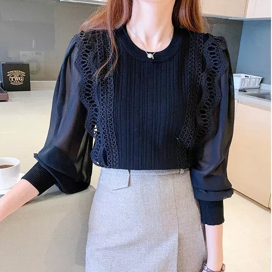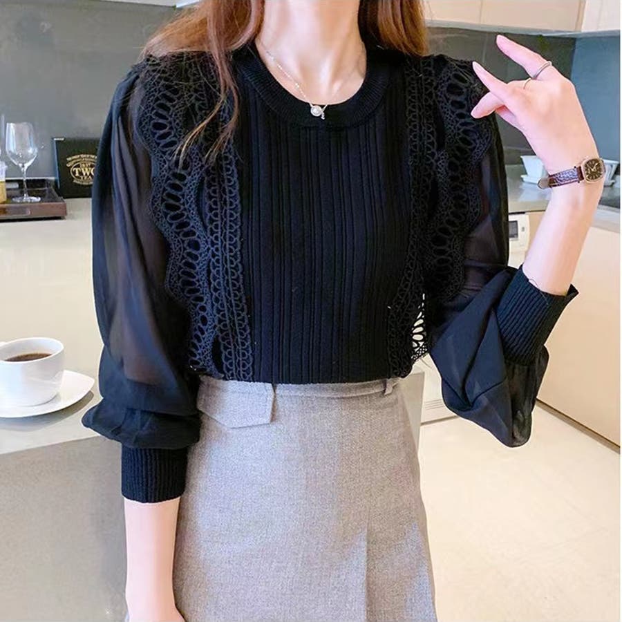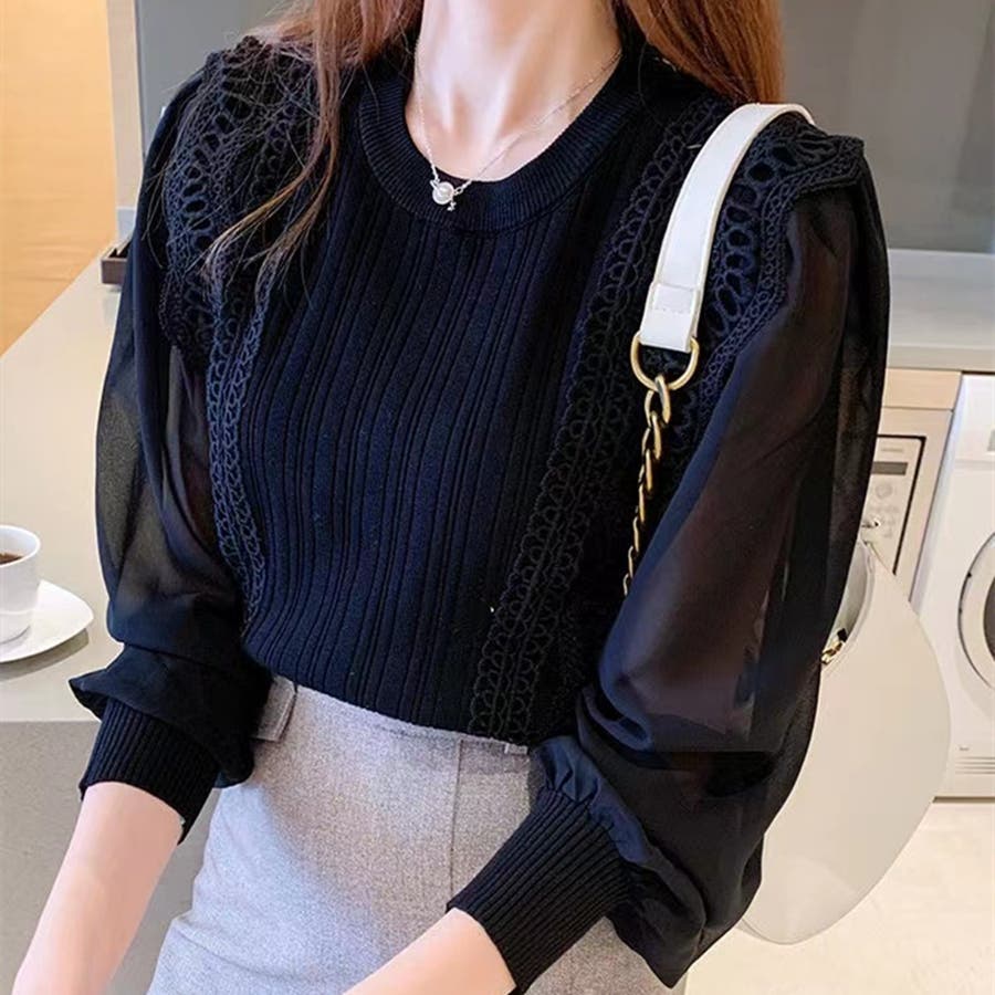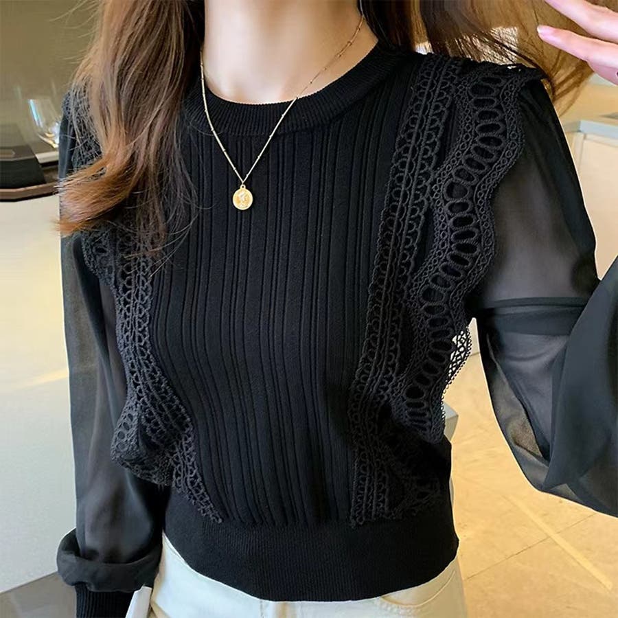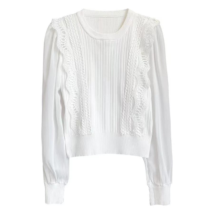 程よい肌見せがヘルシーな透かし編みニットトップス。