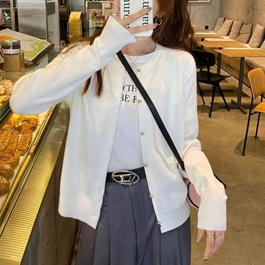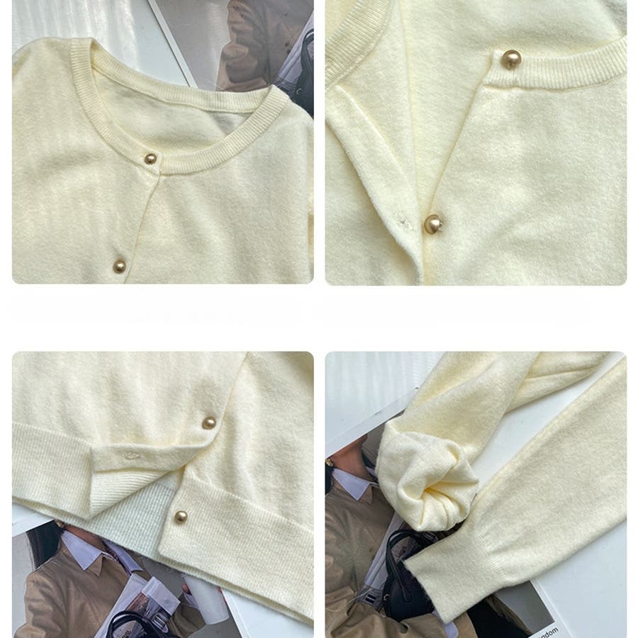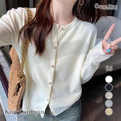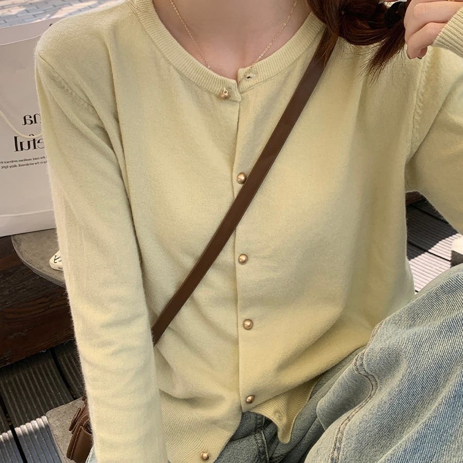 上品で大人かわいい印象を与えるパールボタンニットカーディガン。