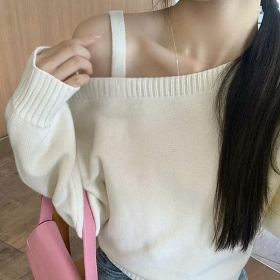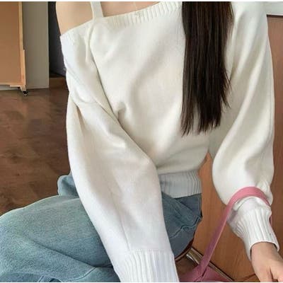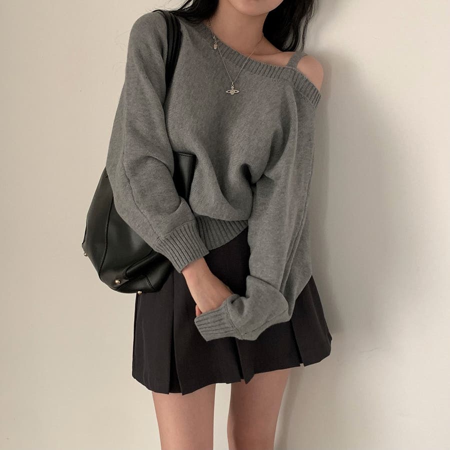 ワンショルダートップス ニット オフショルダー