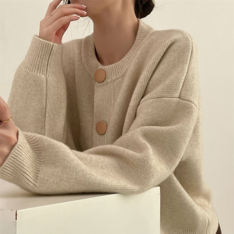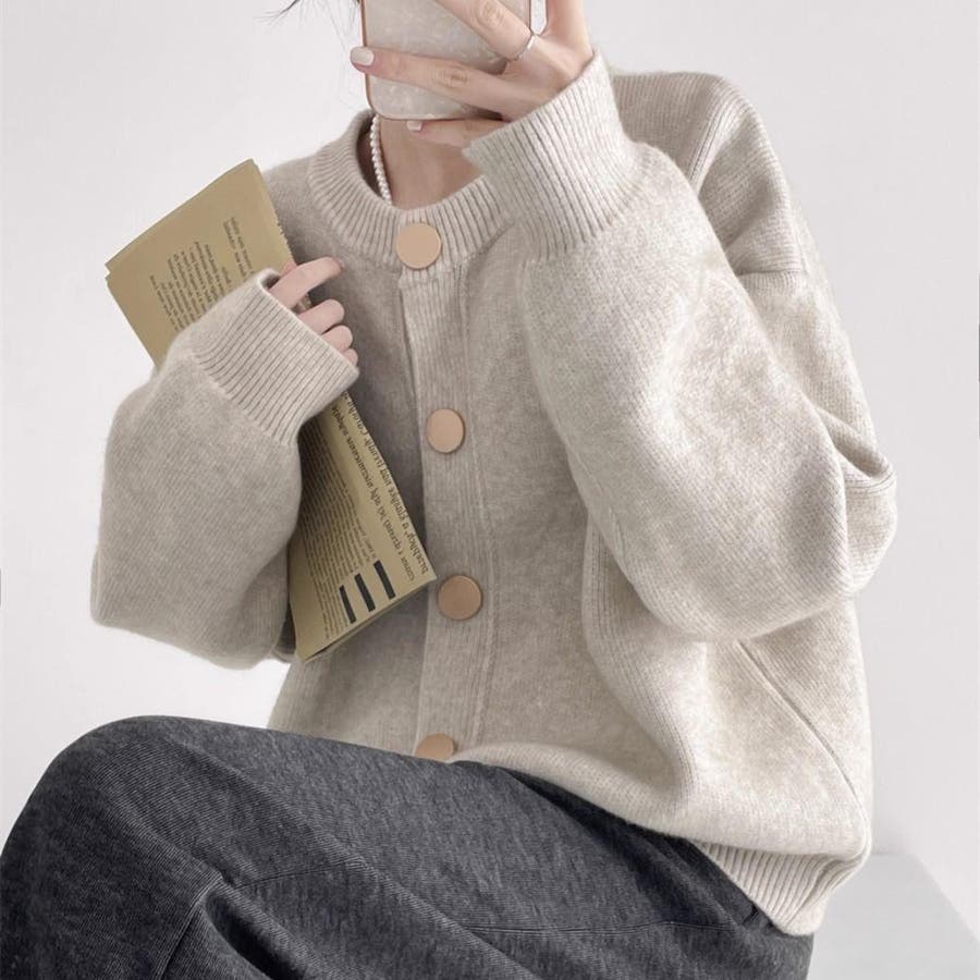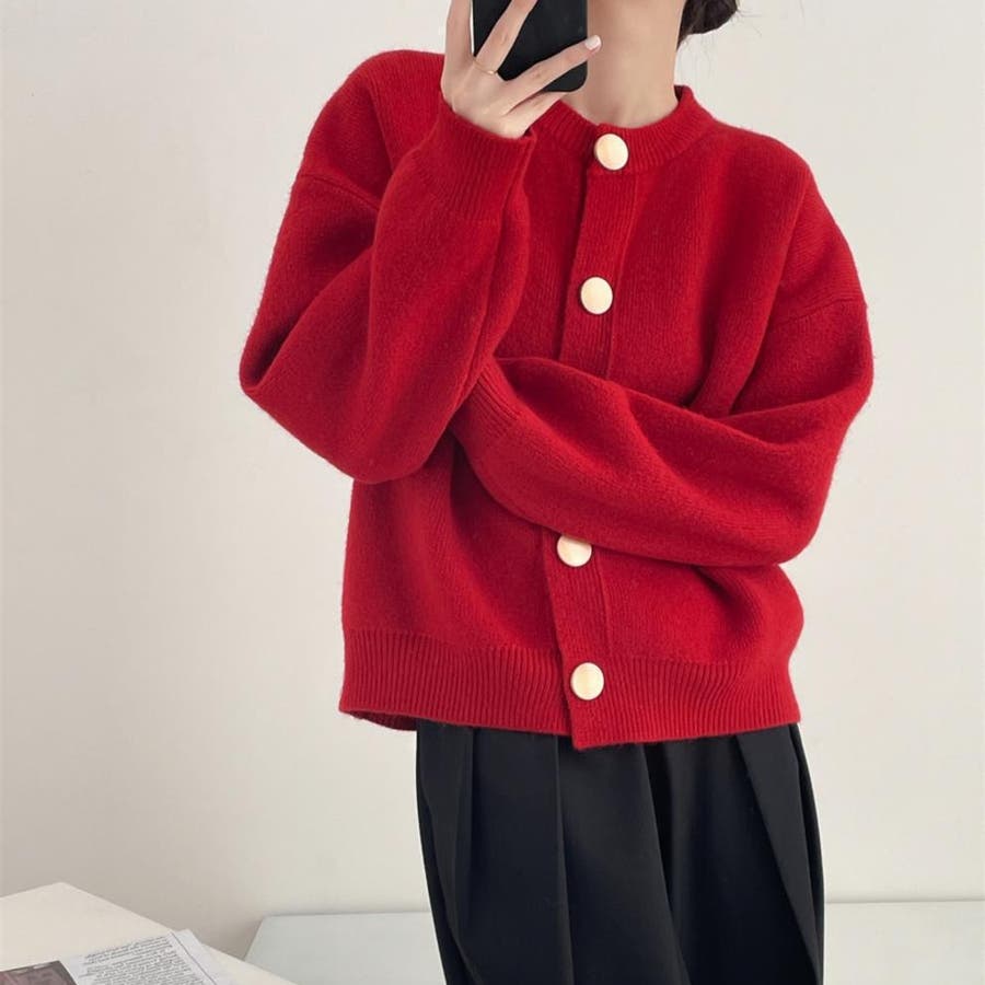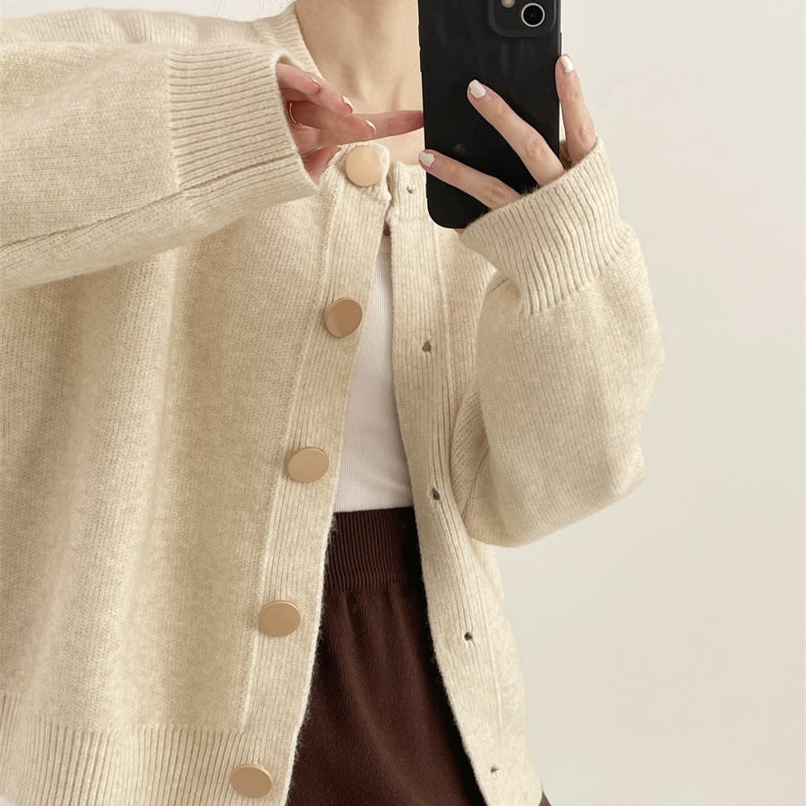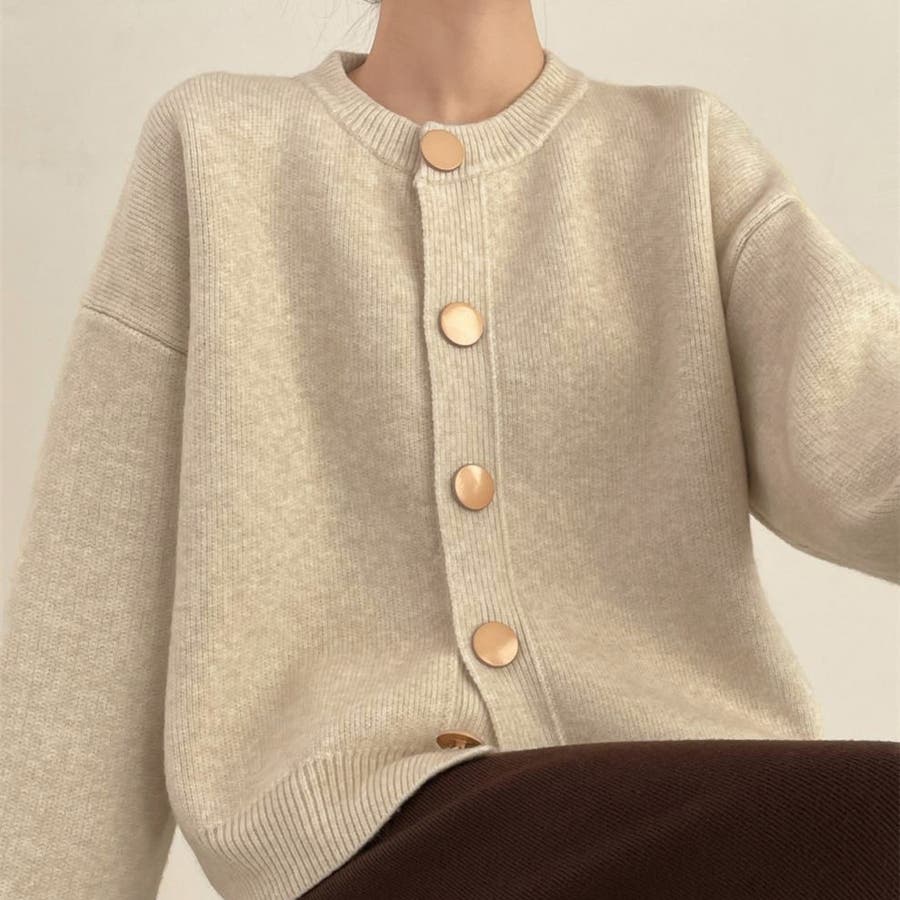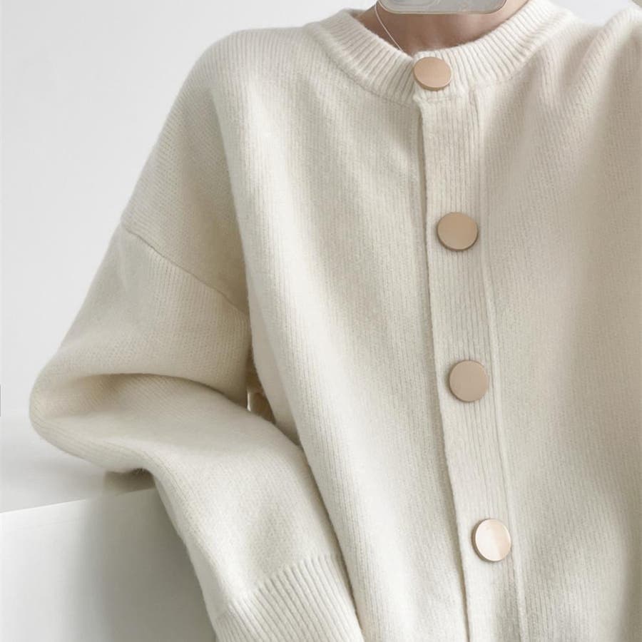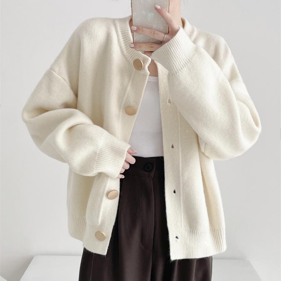 シンプルながらも存在感のある、柔らかな風合いのニットカーディガン。
