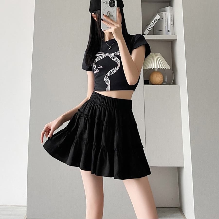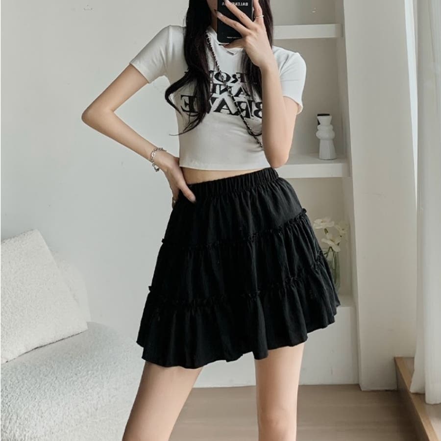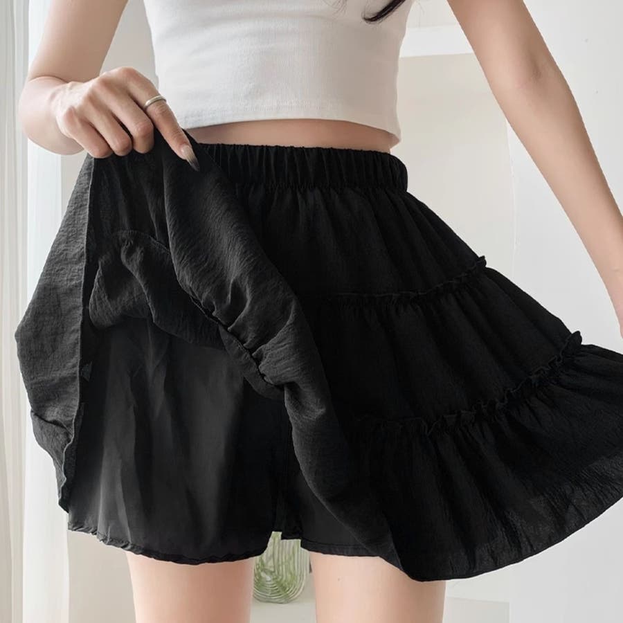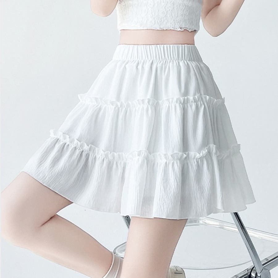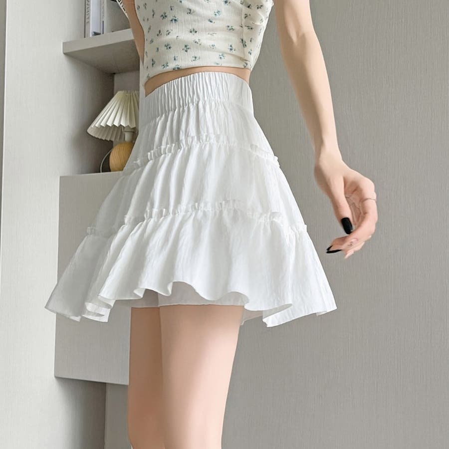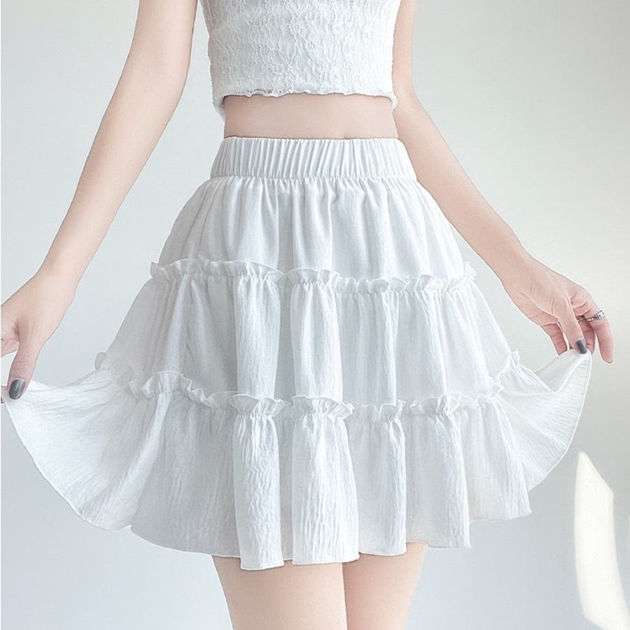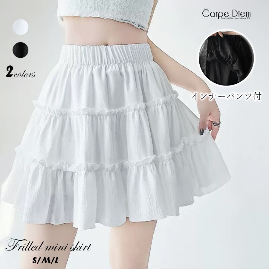 ふわっと広がる3段フリルがポイントのミニスカート。