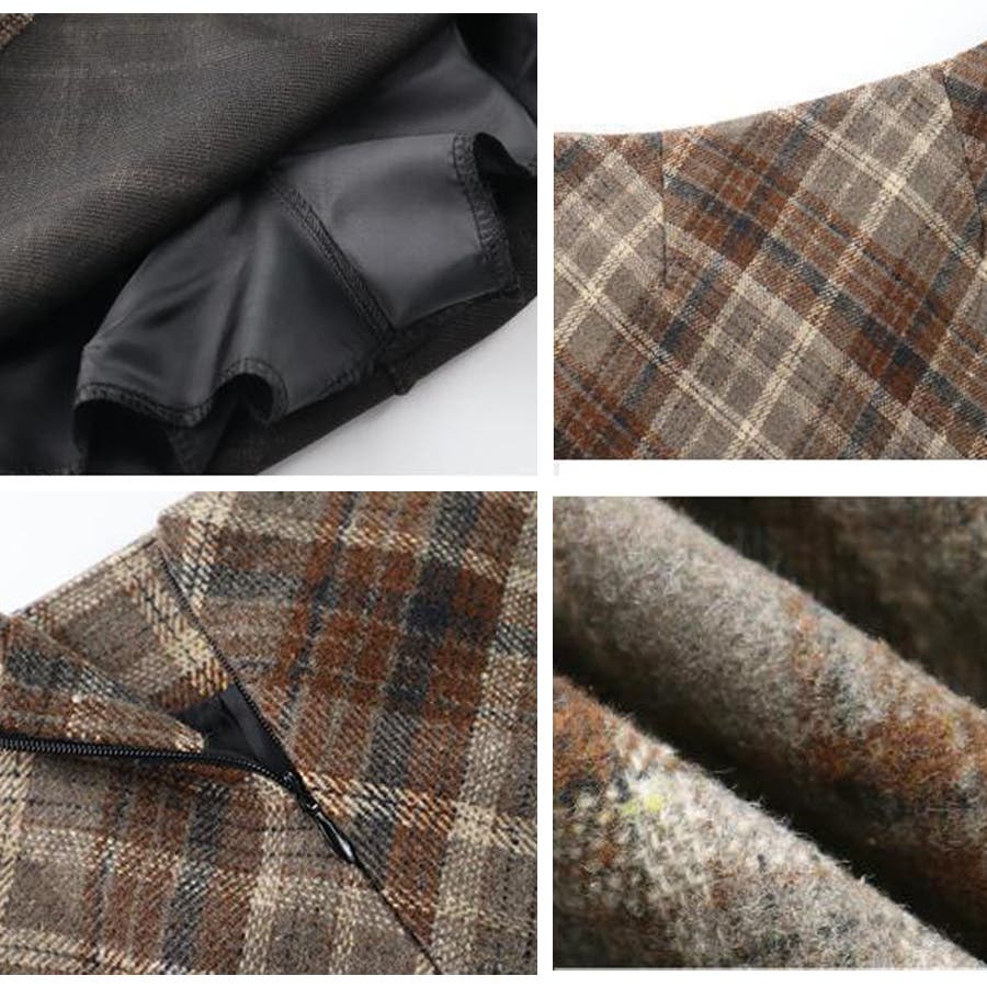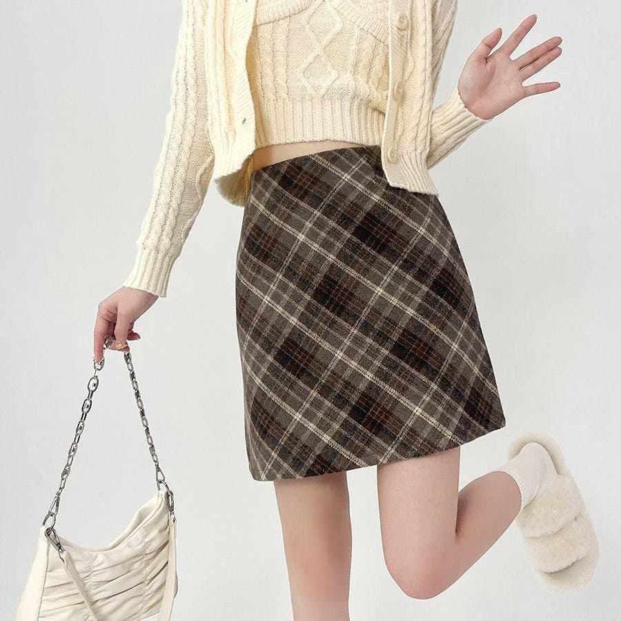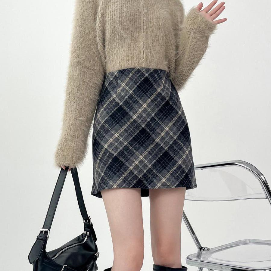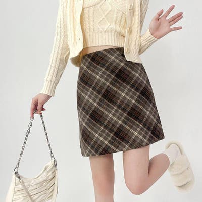 レトロなチェック柄が魅力のウールライクタイトミニスカート