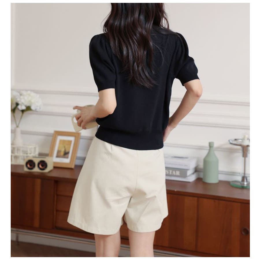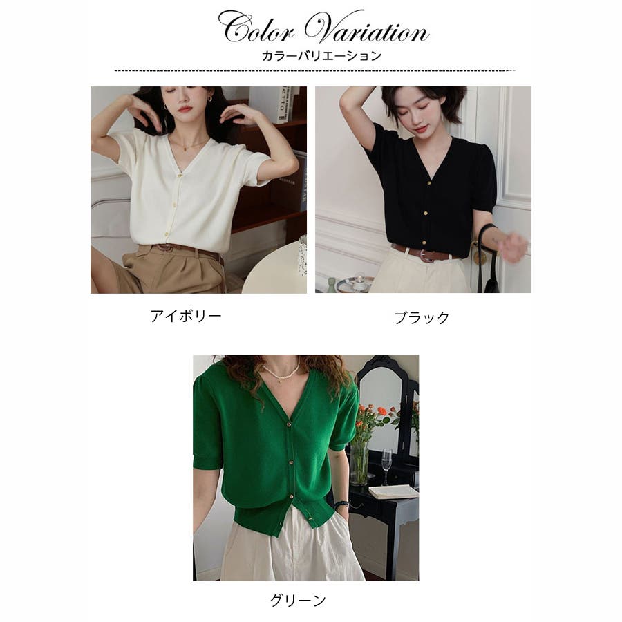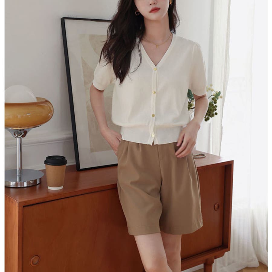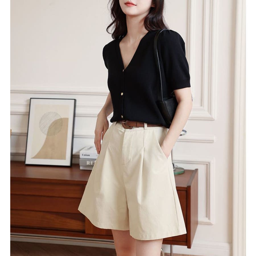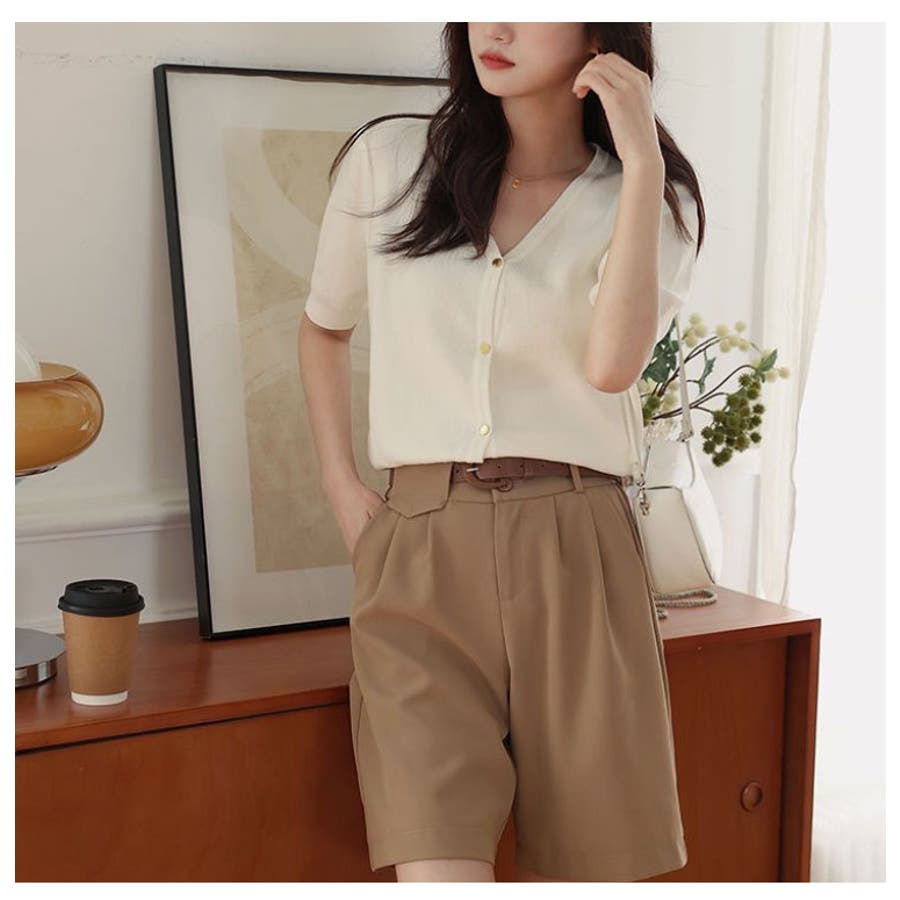 Vネックと半袖の組み合わせが、涼しげでありながらも上品な印象を与えます。
