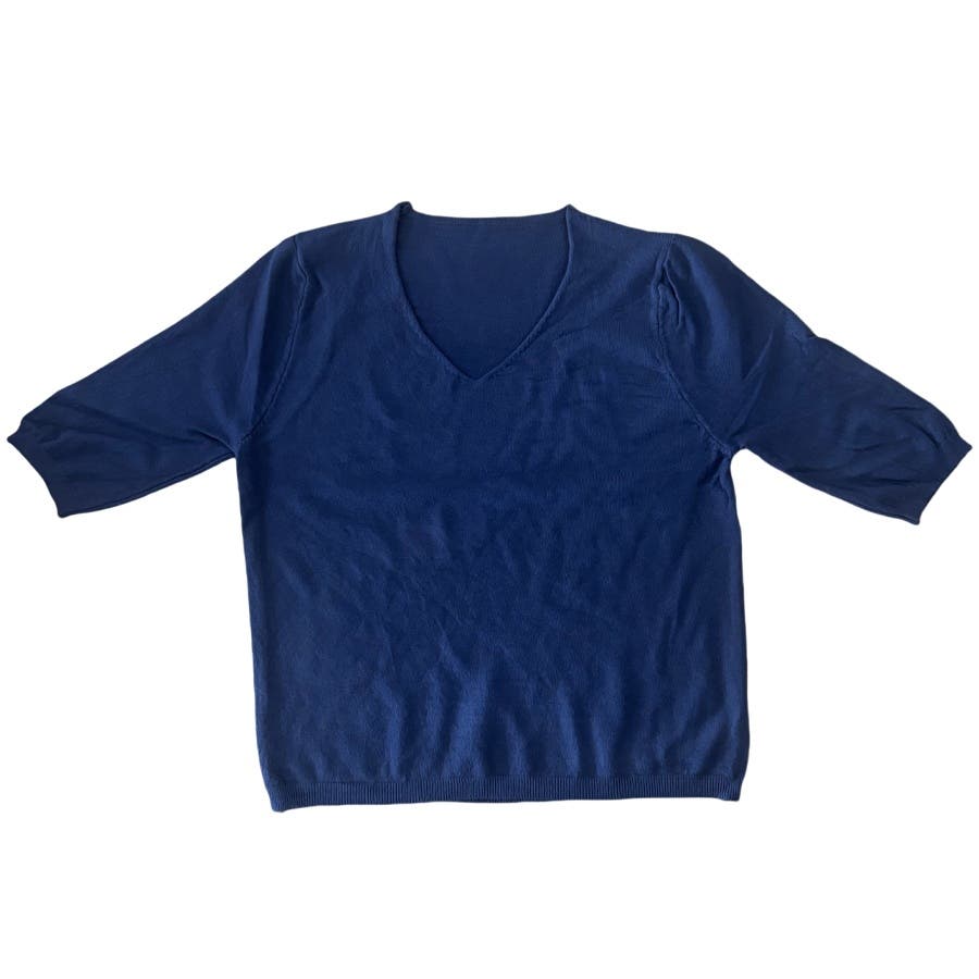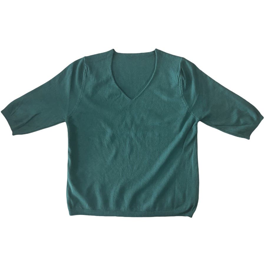 ふんわりとしたサマーニット生地と程よいゆったりし感が着心地がよくこれからの季節に使いやすい。