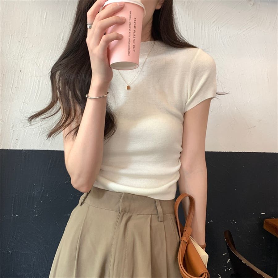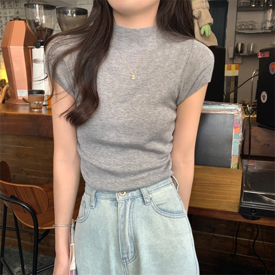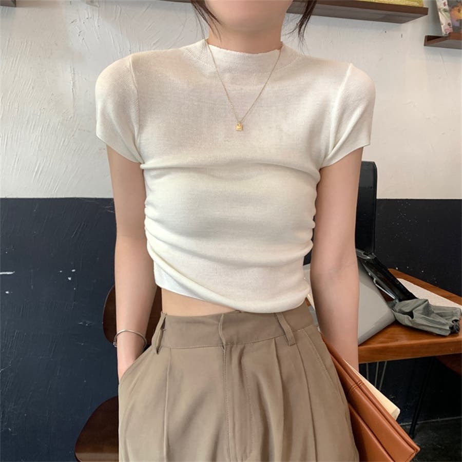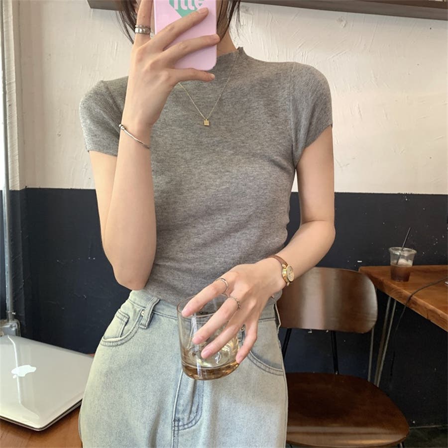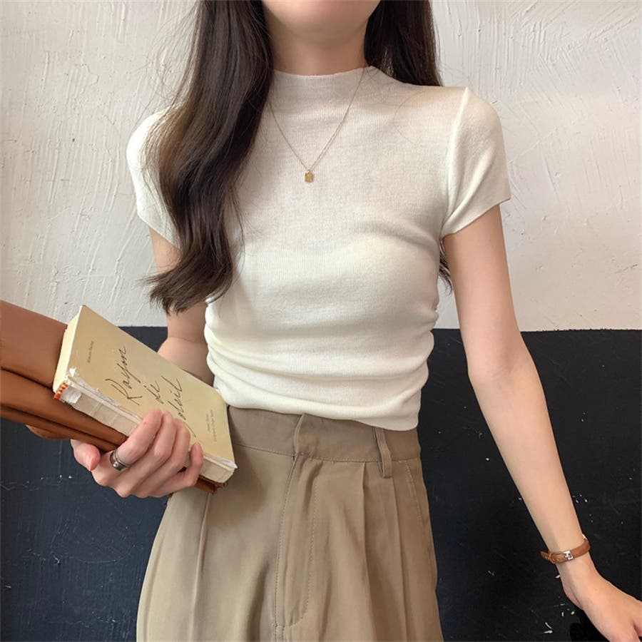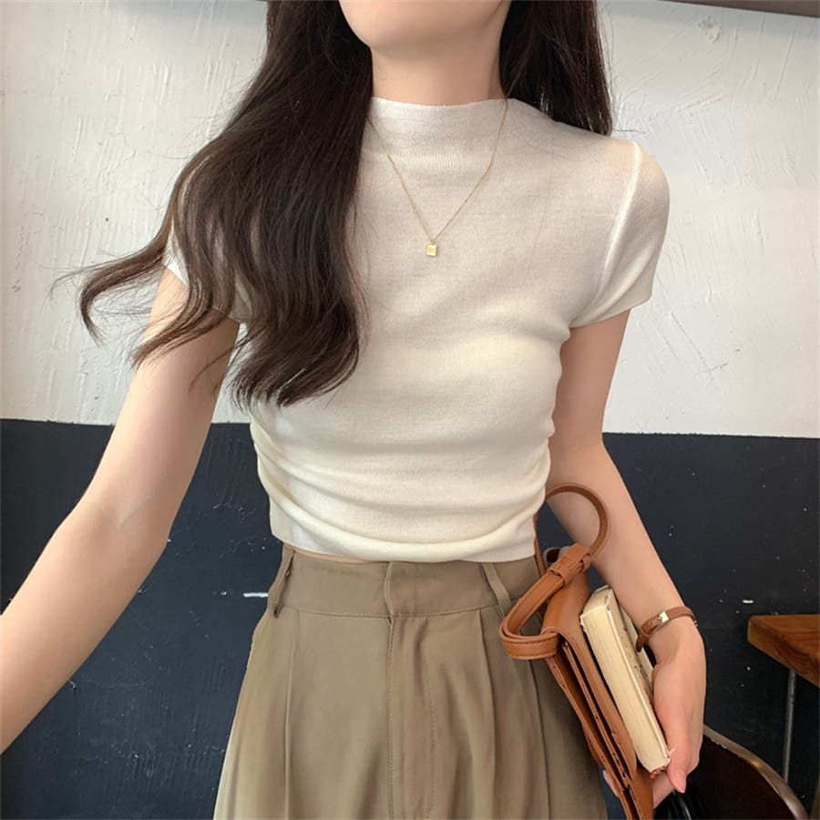 サマーニット 半袖ニット ハイネックニット