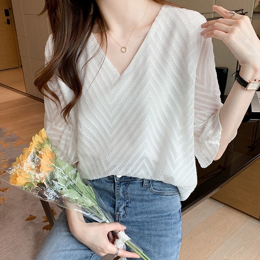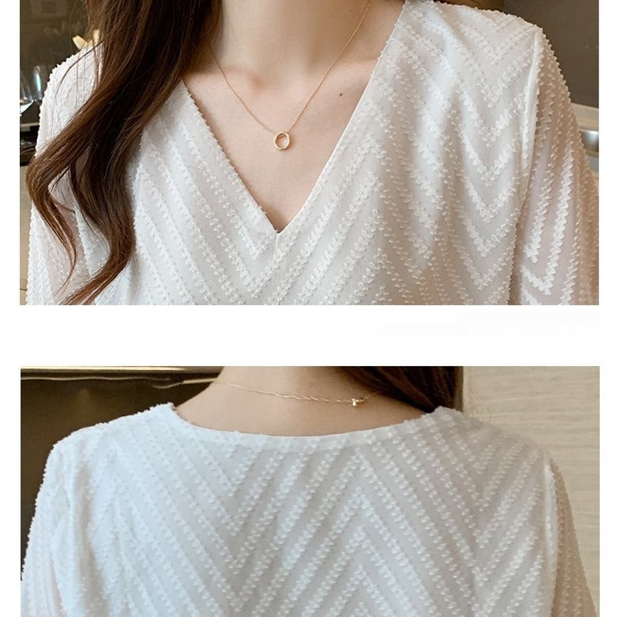 Vネックデザインがデコルテを美しく見せ、女性らしさを引き立てます。
