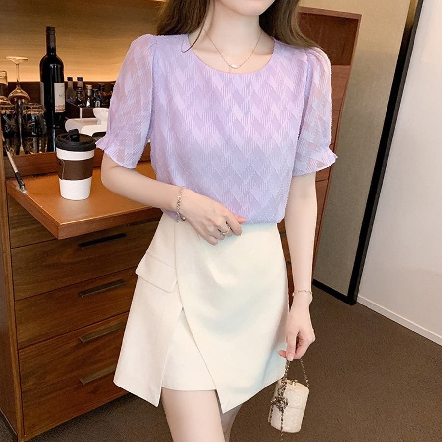袖部分はシアー素材で仕立てられており、軽やかで女性らしい印象を与えてくれます。