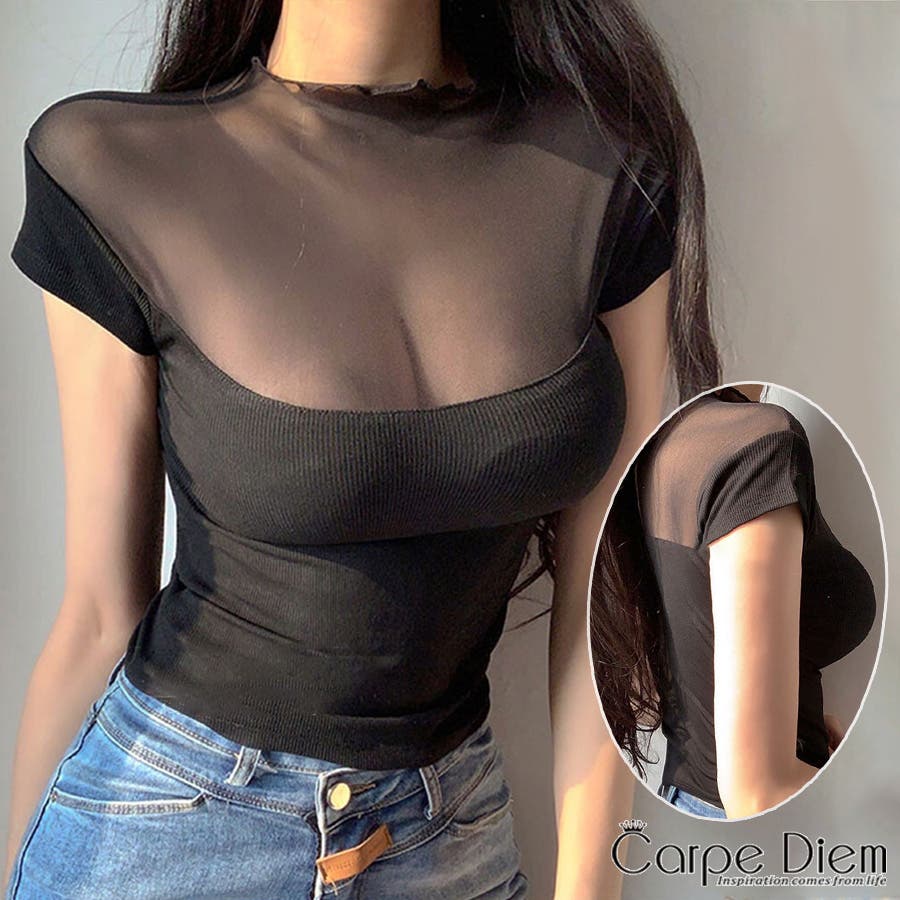 シアートップス 半袖シアーカットソー 夏トップス