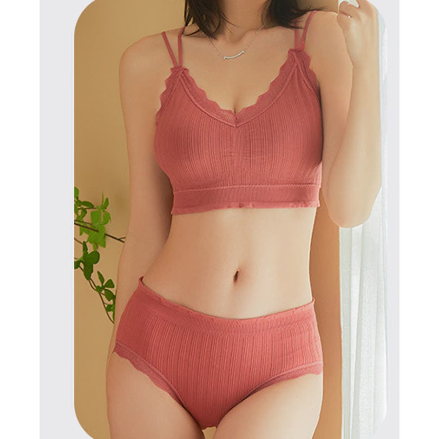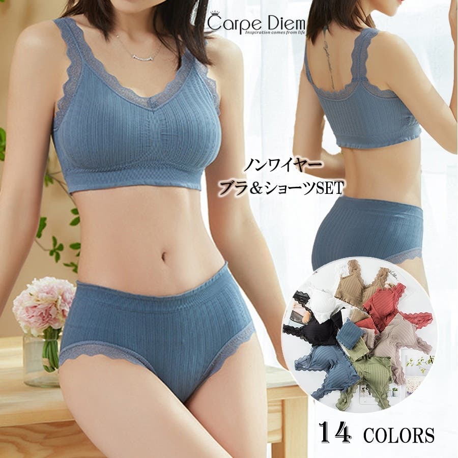 ノンワイヤー ブラジャー ブラ&ショーツセット