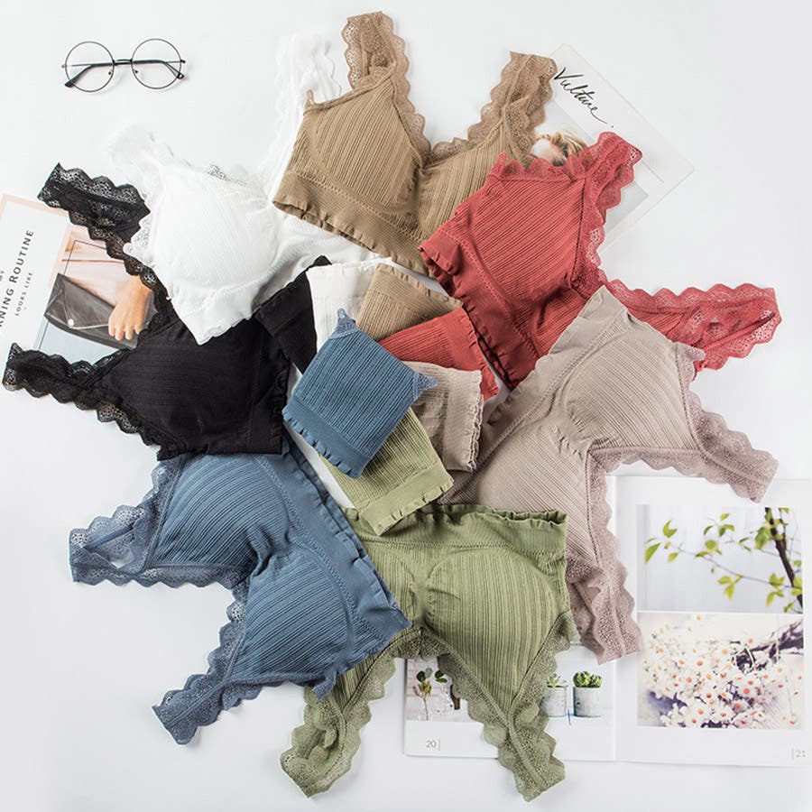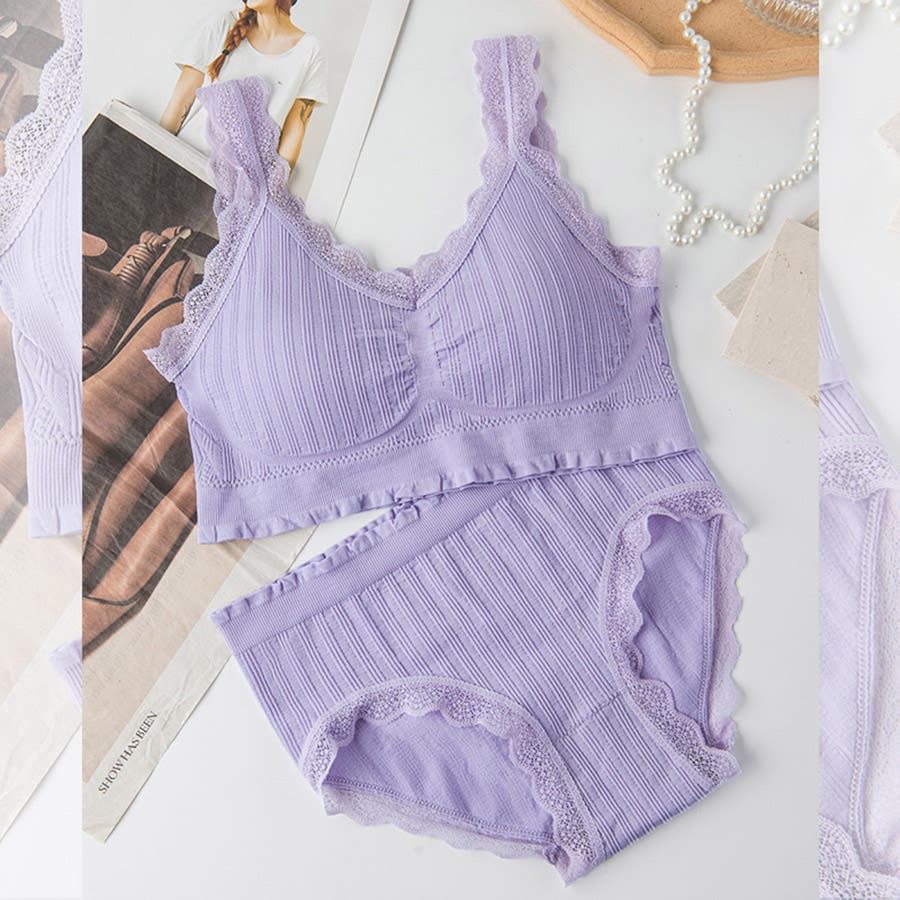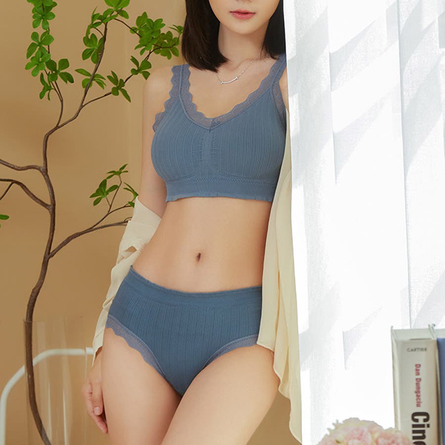 カップ付きブラジャーショーツセットはワイヤーもなく、締め付け感がないのでストレスなし!