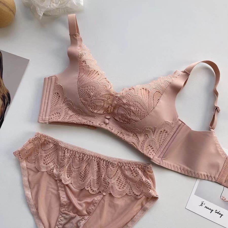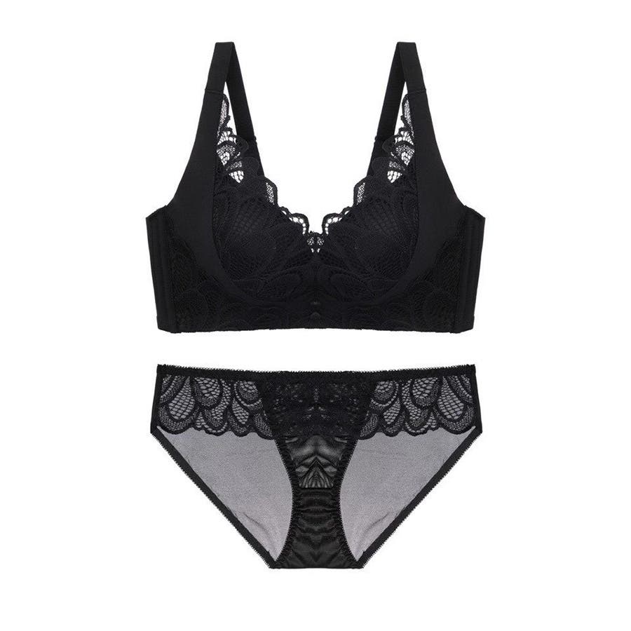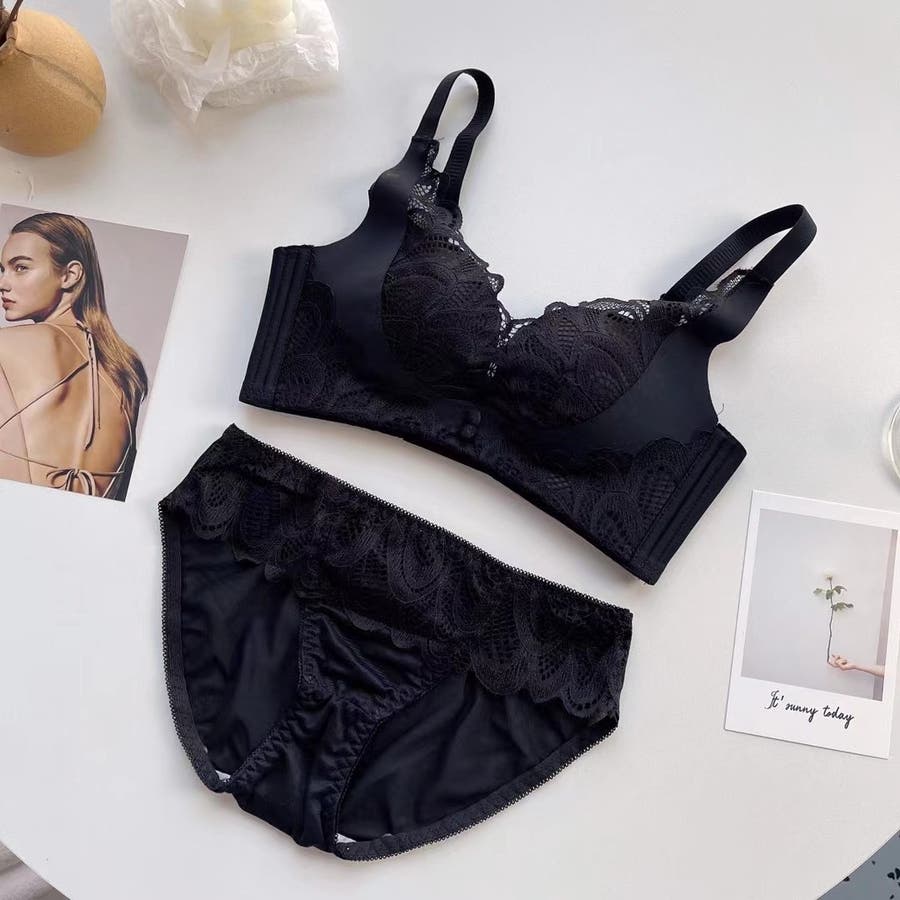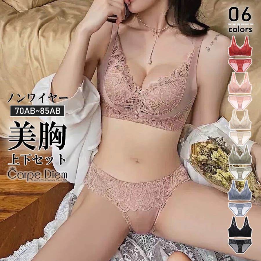 繊細な総レースがセクシーさと上品さを兼ね備えたノンワイヤーランジェリー上下セット。
