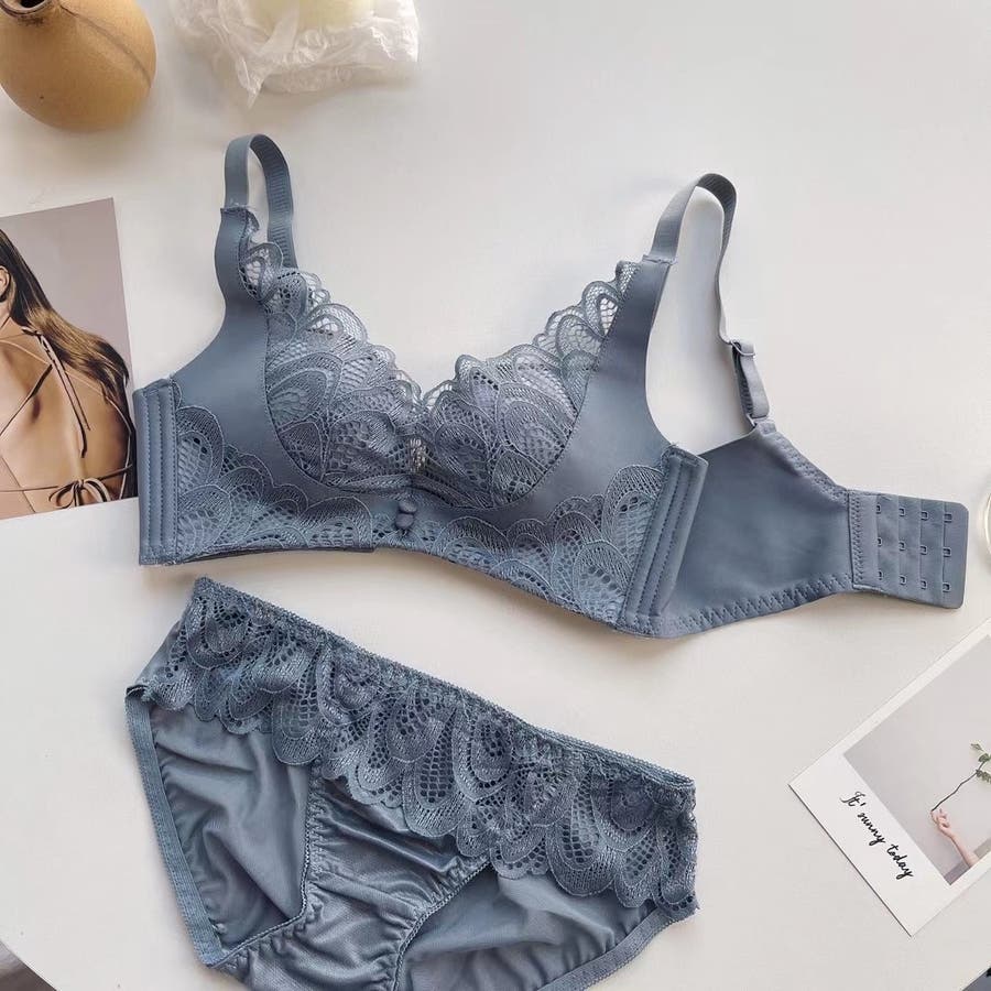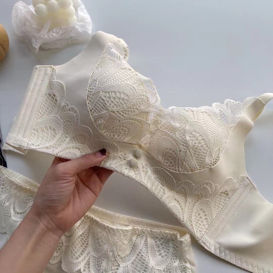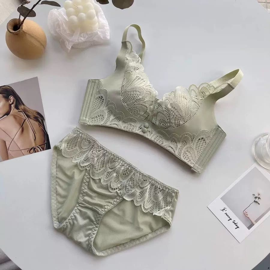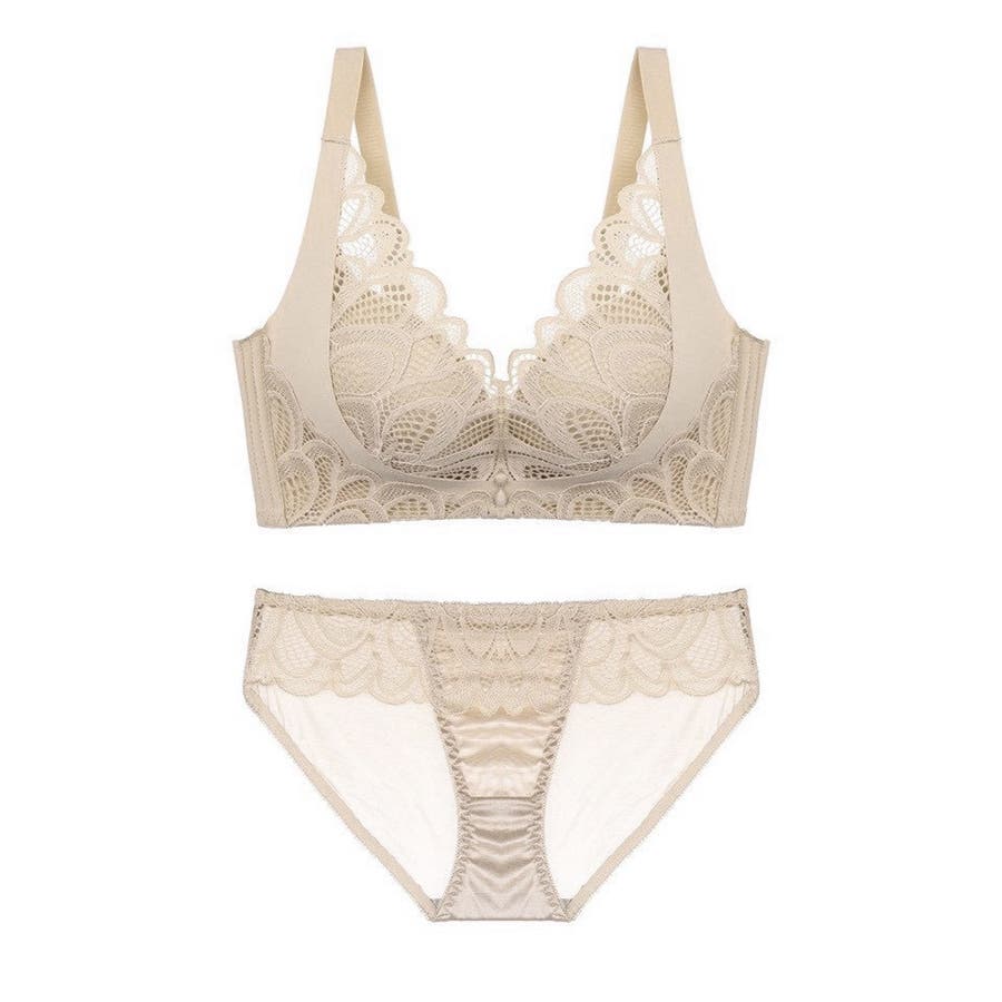 繊細な総レースがセクシーさと上品さを兼ね備えたノンワイヤーランジェリー上下セット。
