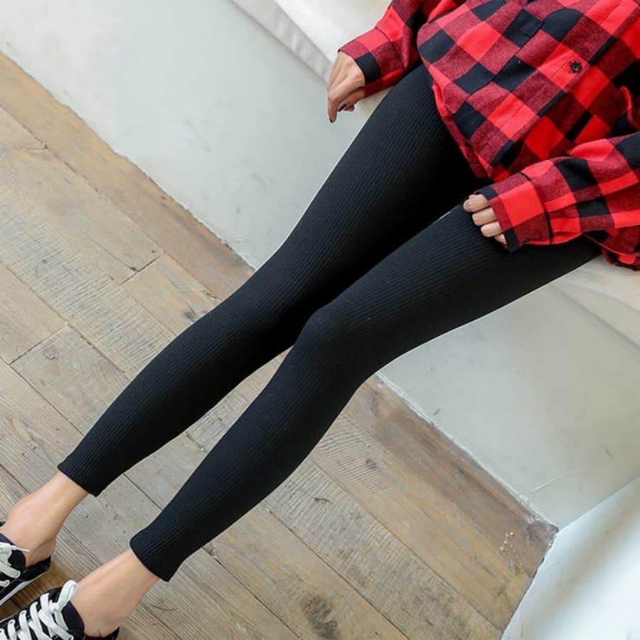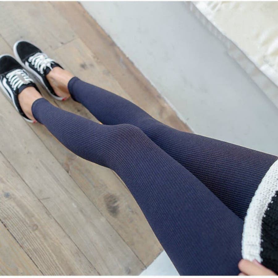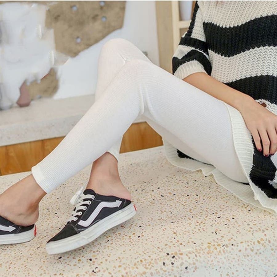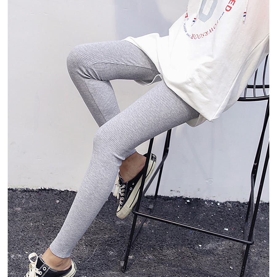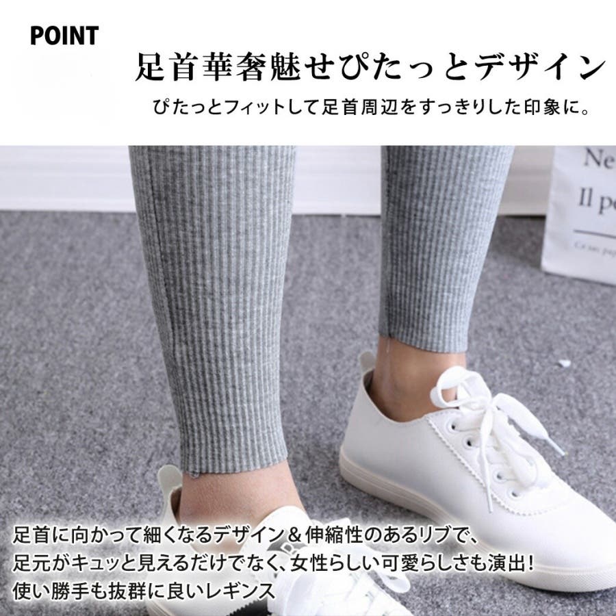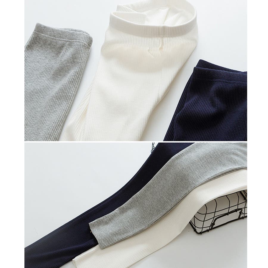 綿混素材でしっかりとした手触りのリブ生地ウエストゴム仕様のレギンスパンツ