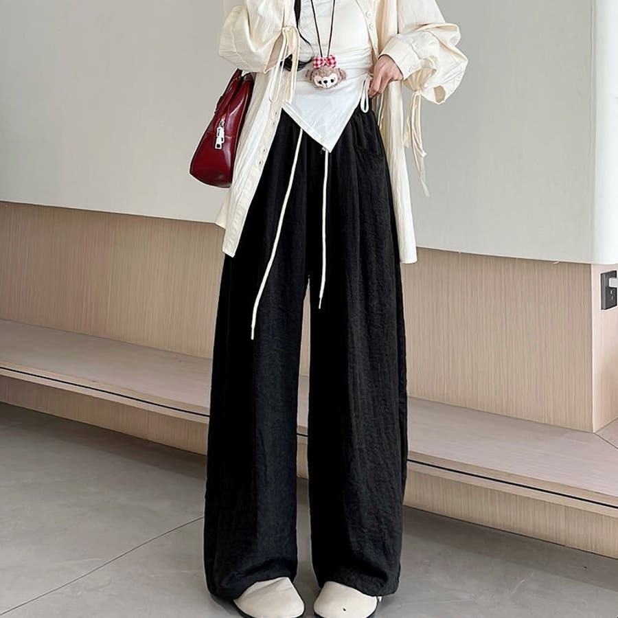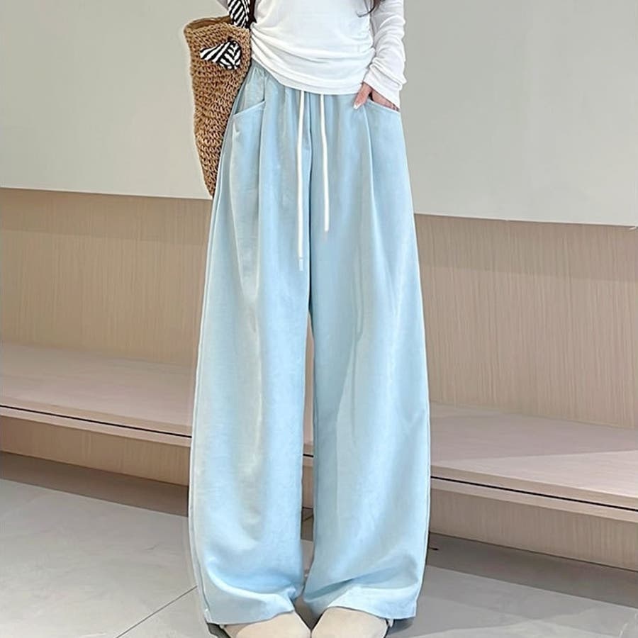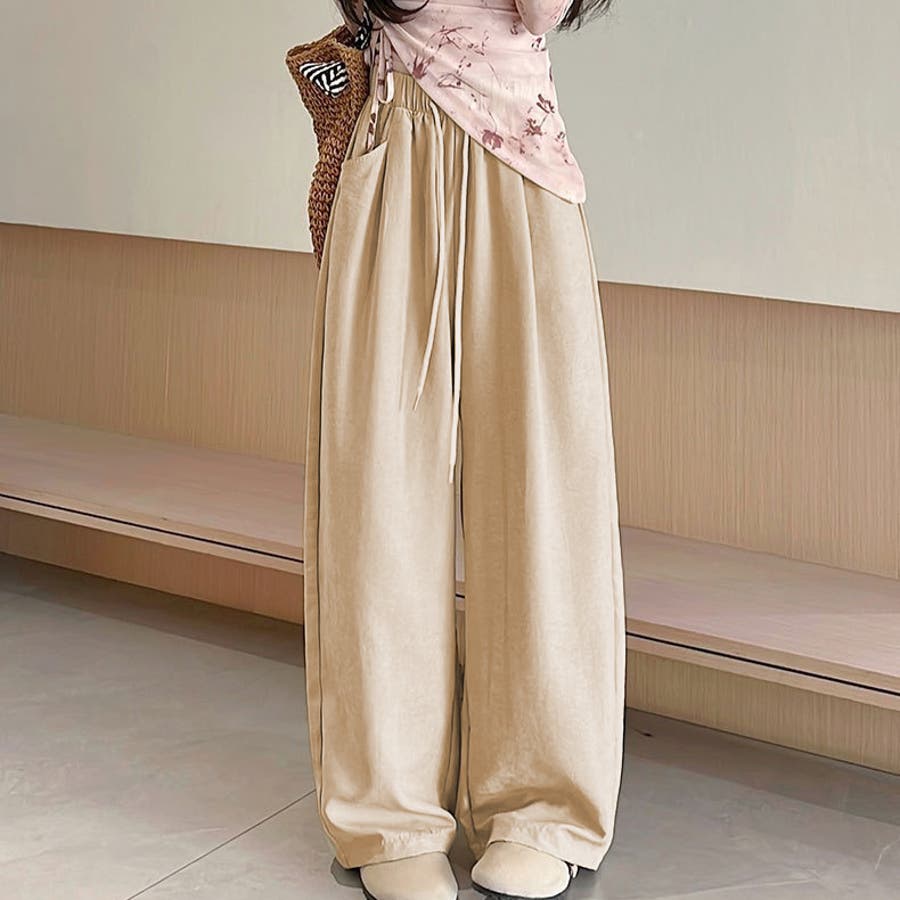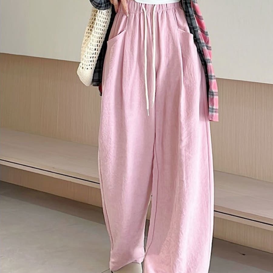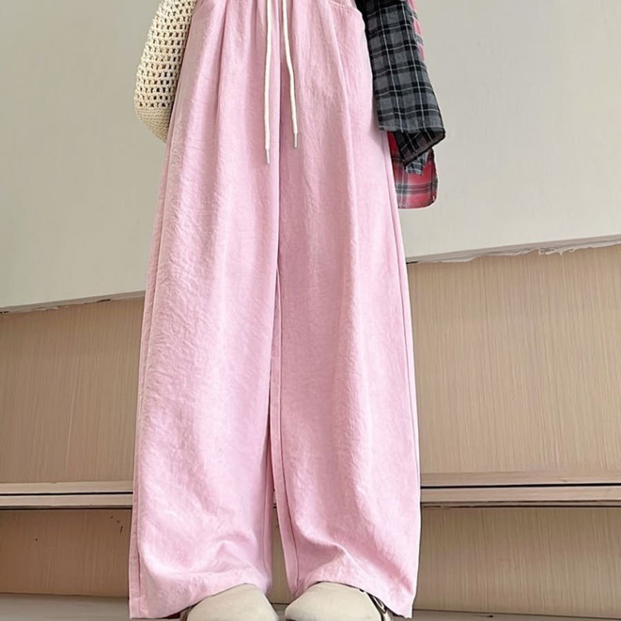 【ライトピンク】ワイドパンツ 秋 ハイウエスト