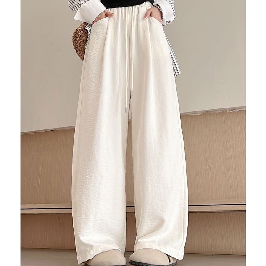 ウエストゴムでストレスフリーな着心地を実現し、長時間穿いていても疲れにく、リラックスタイムを満喫できます。