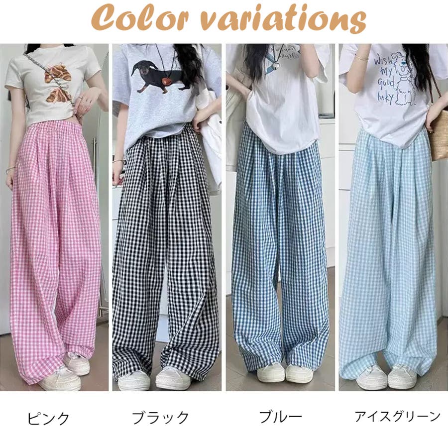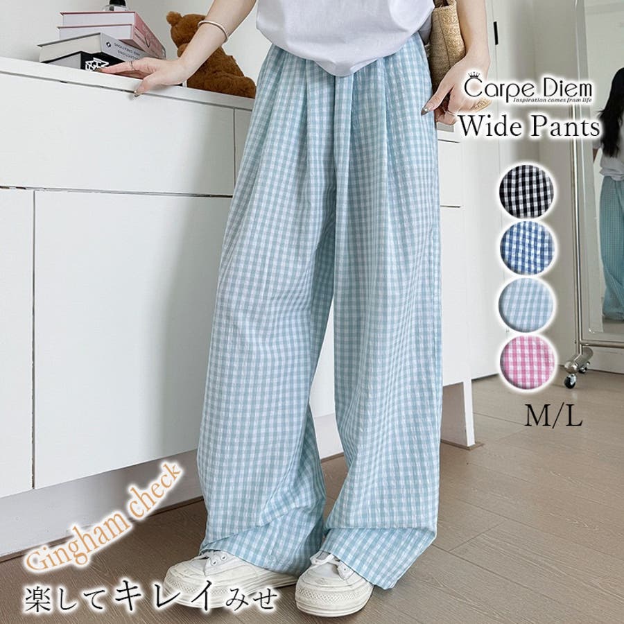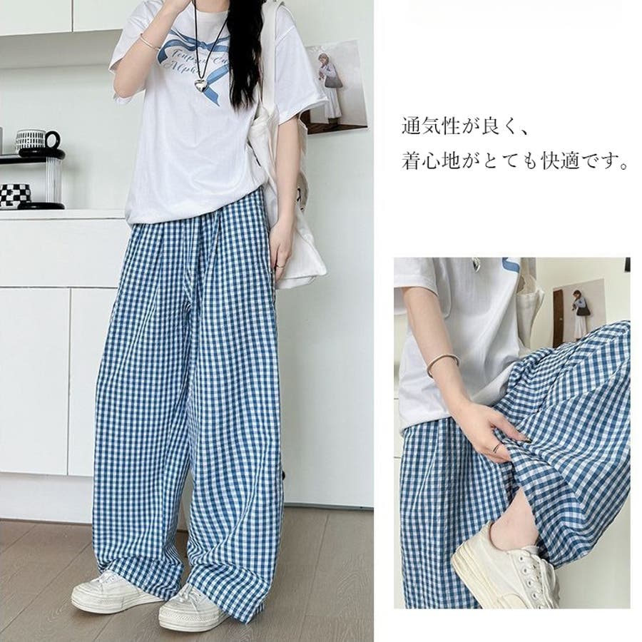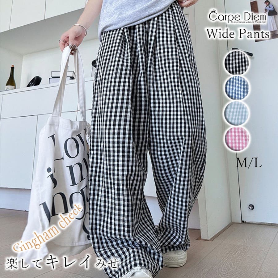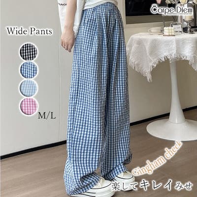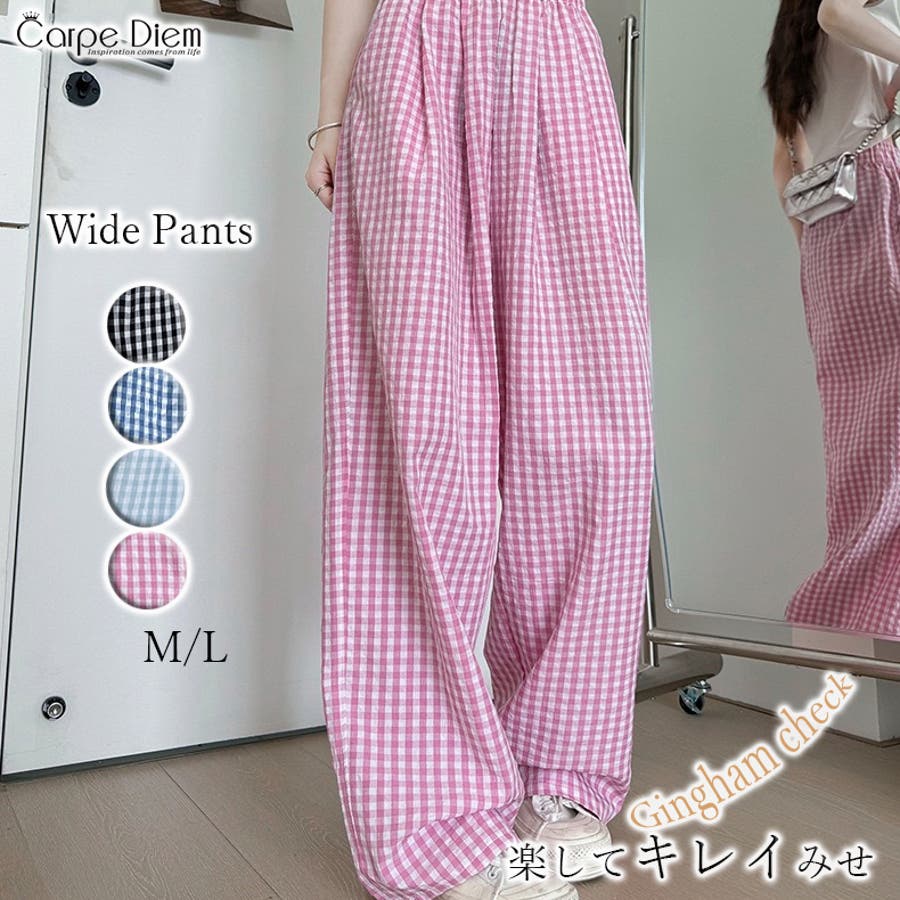 爽やかなギンガムチェック柄が目を引く、涼しげで可愛いワイドパンツ。