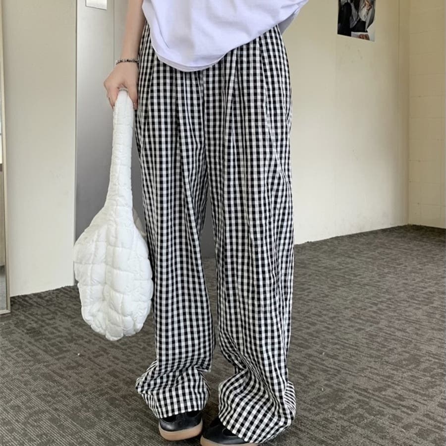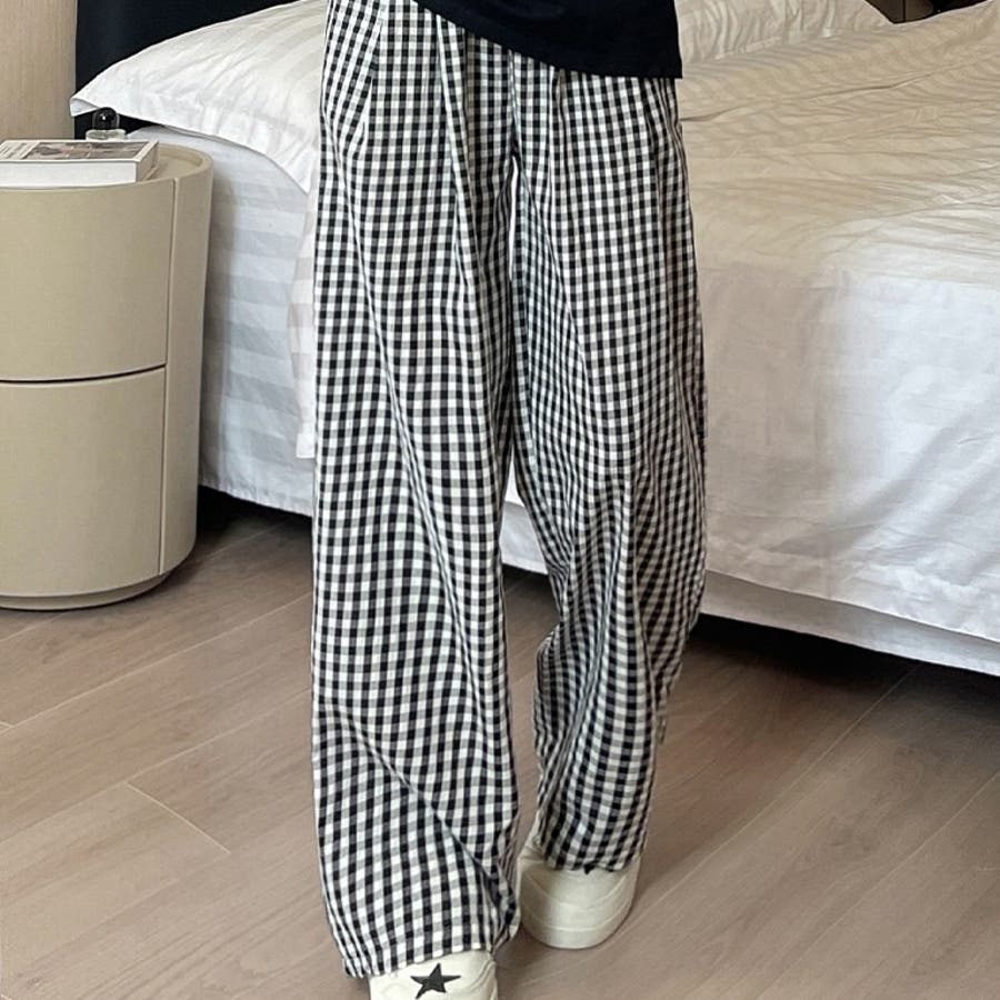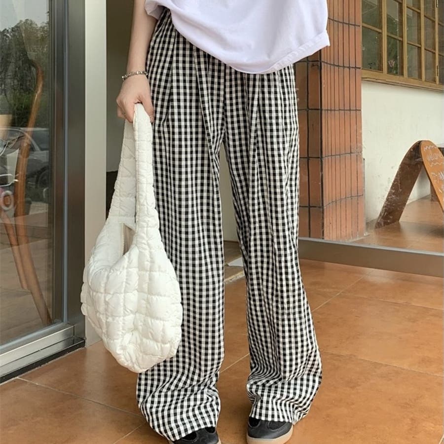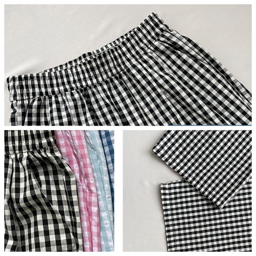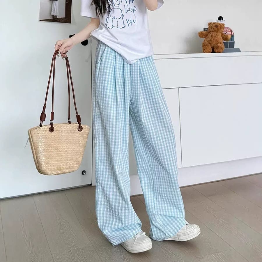 爽やかなギンガムチェック柄が目を引く、涼しげで可愛いワイドパンツ。
