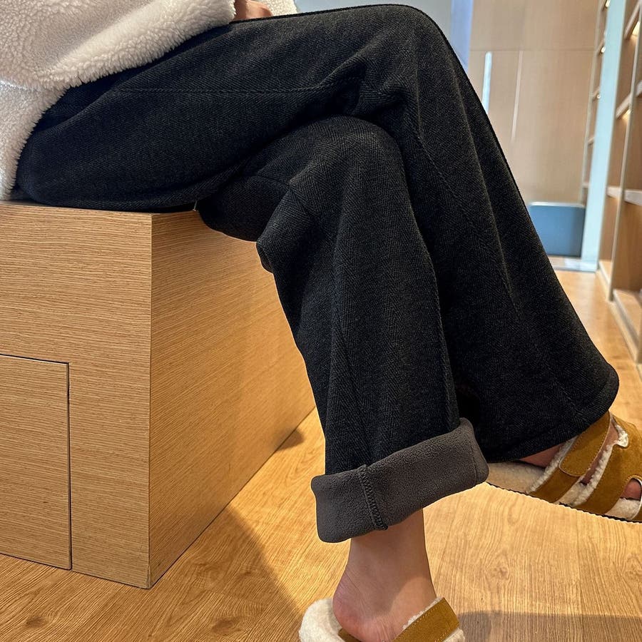きれいめ見えする上品なワイドシルエットながら、内側はふわふわの裏起毛で穿いた瞬間から暖かい1本です。