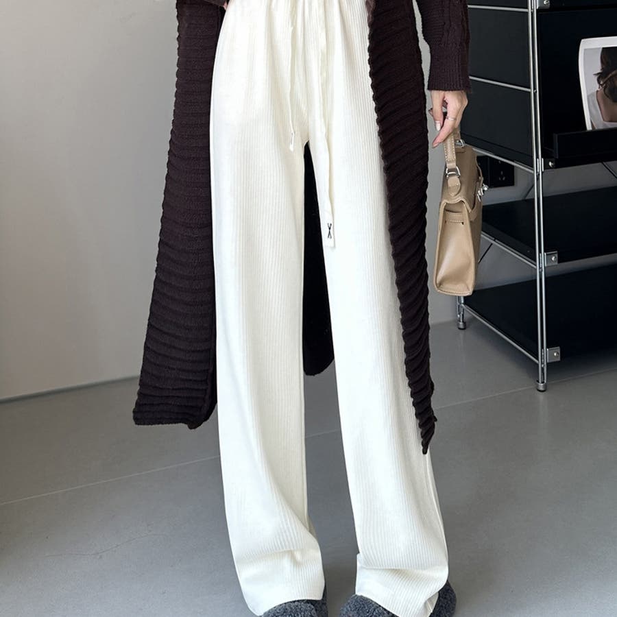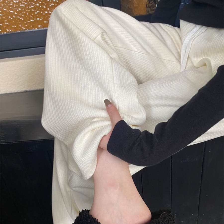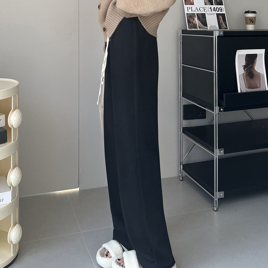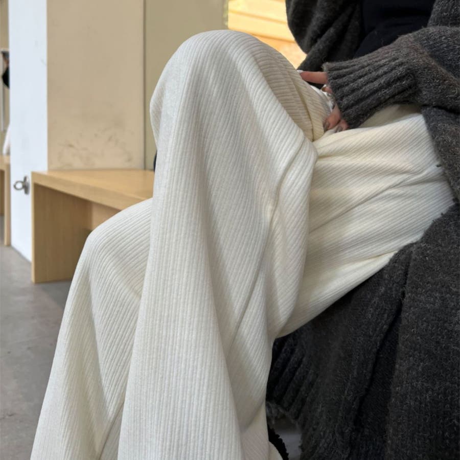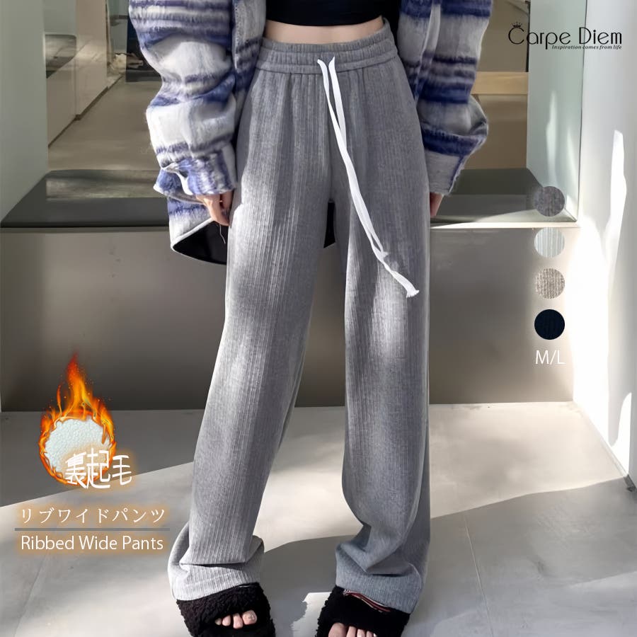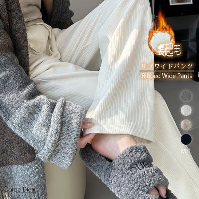 裏起毛 ワイドパンツ リブワイドパンツ