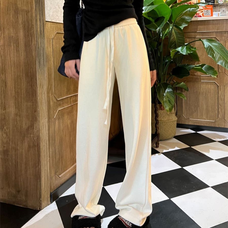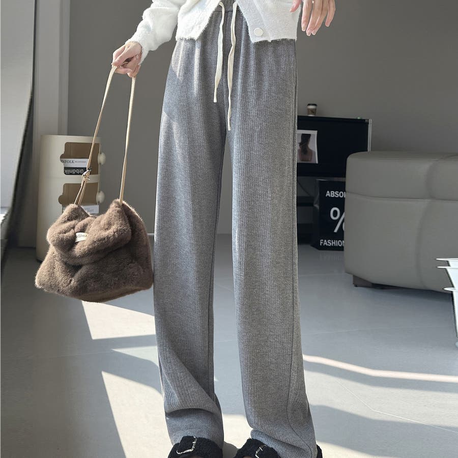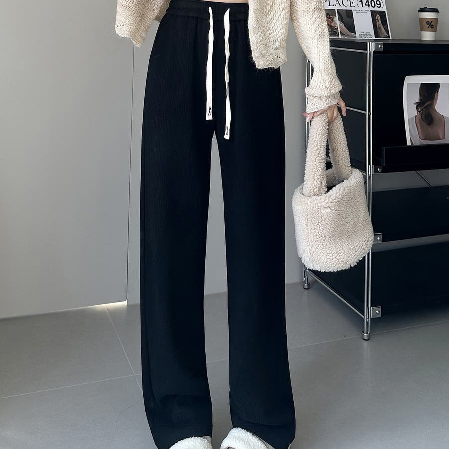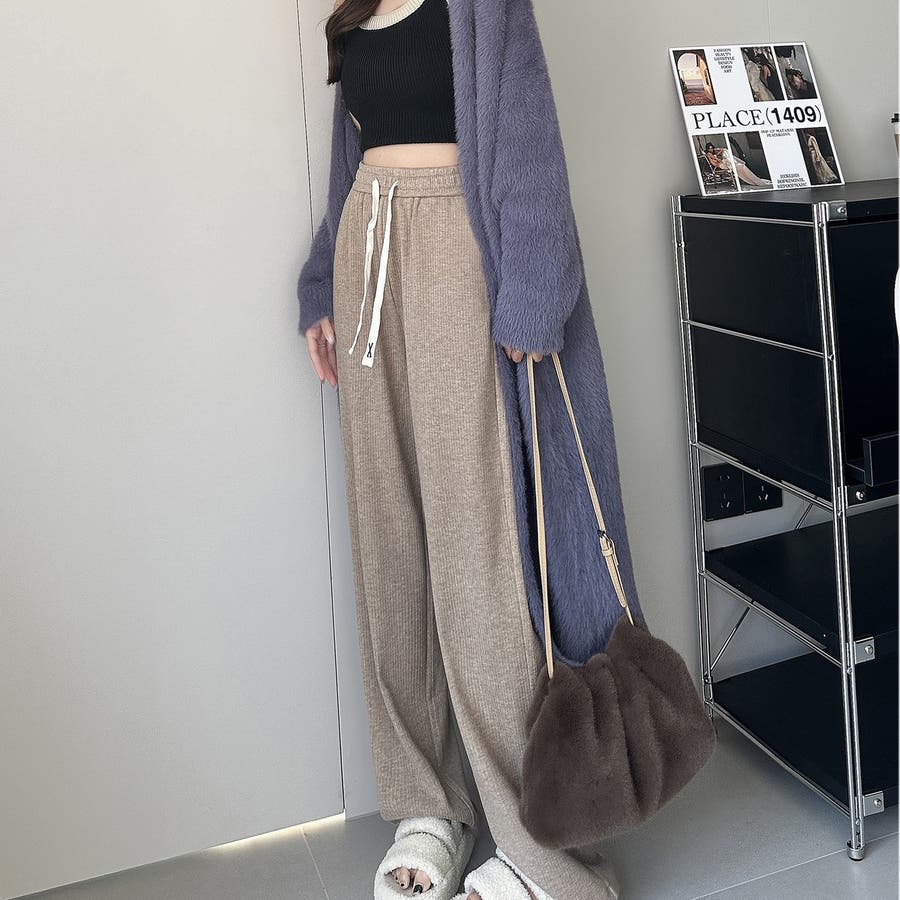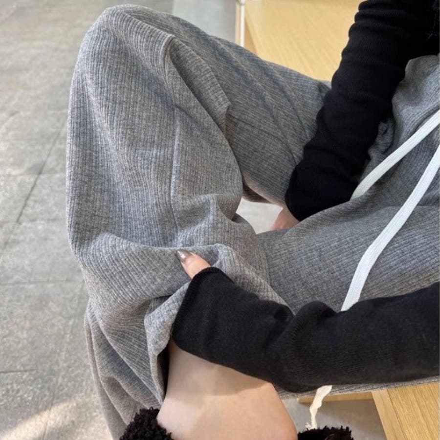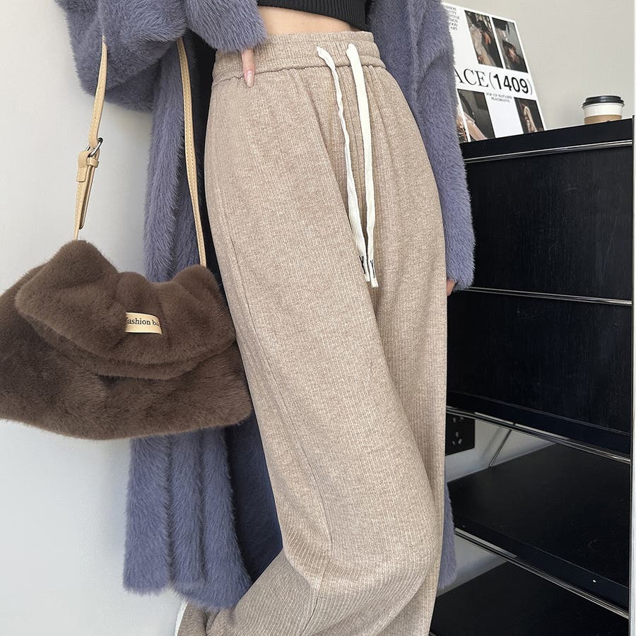 裏起毛 ワイドパンツ リブワイドパンツ