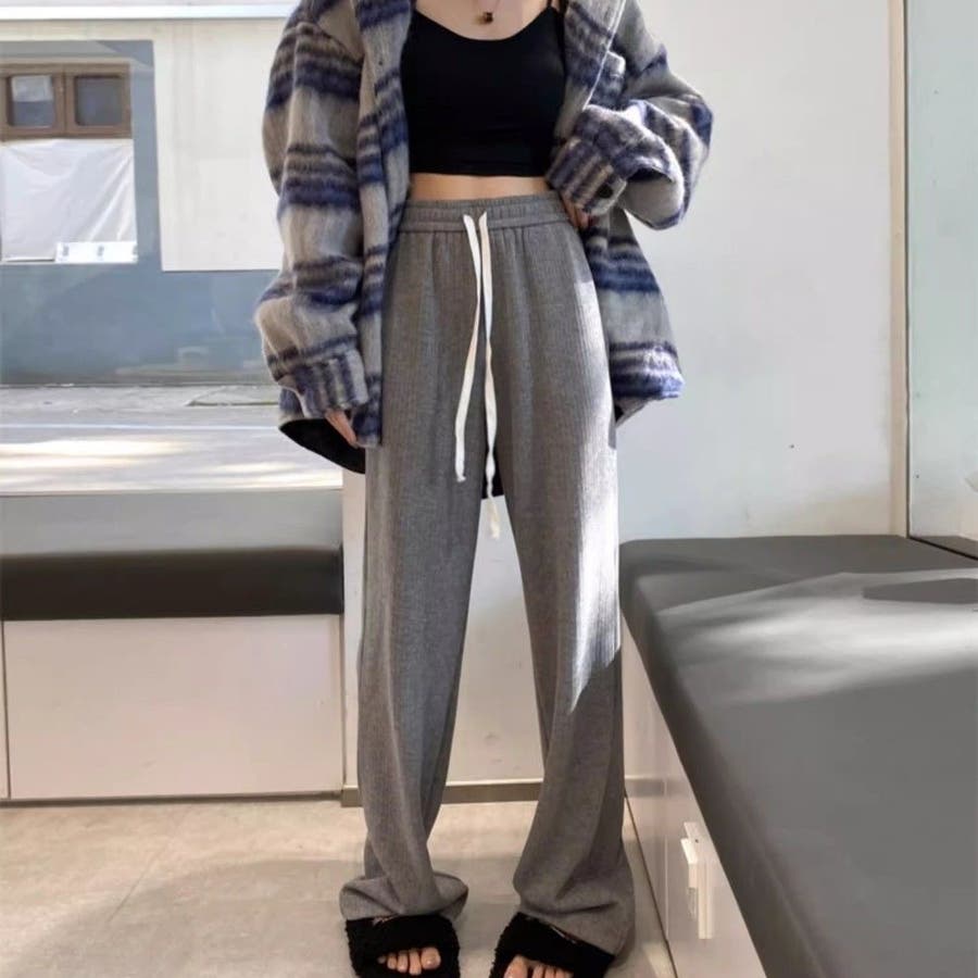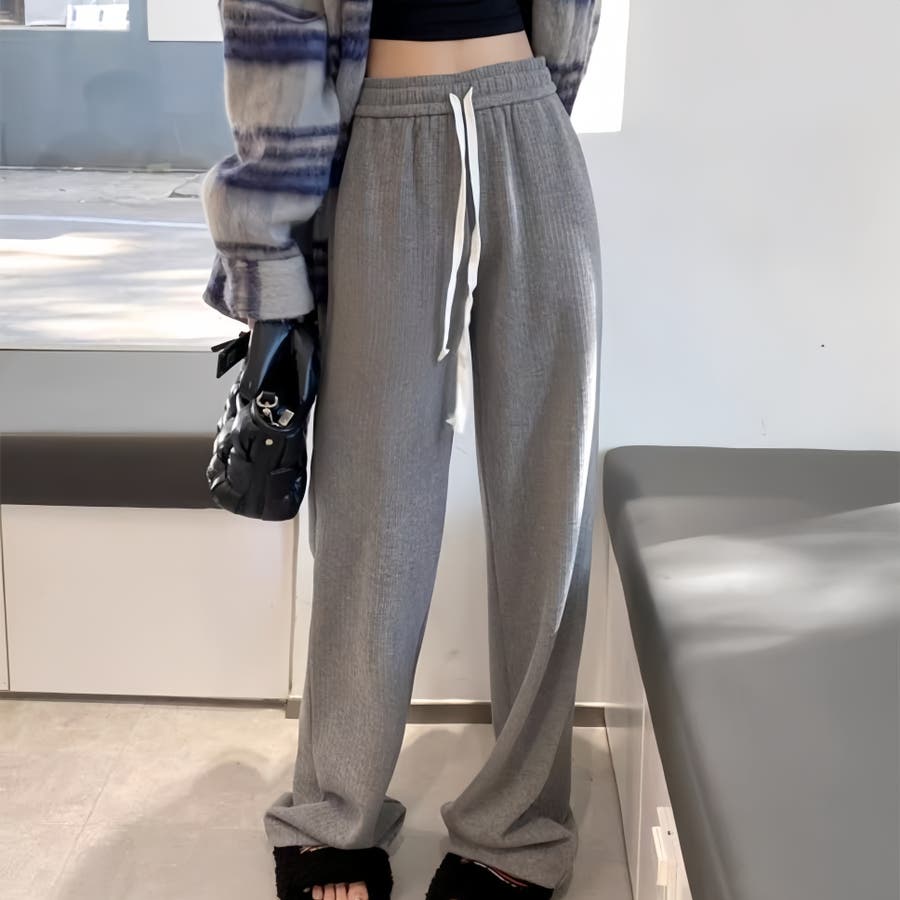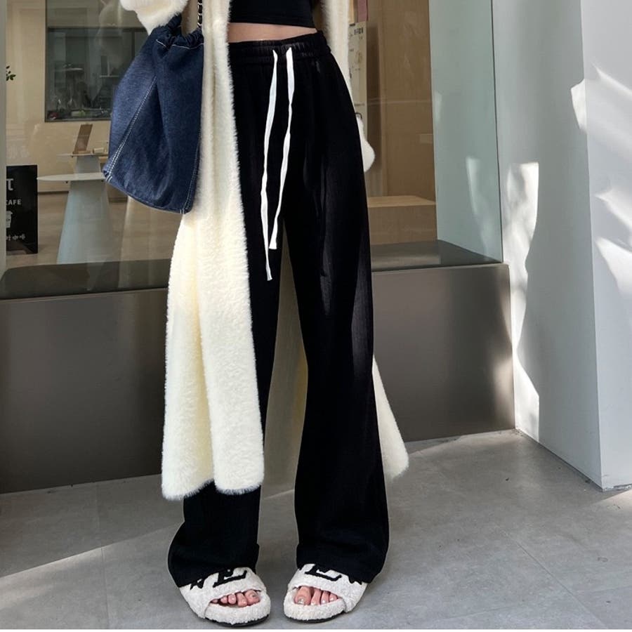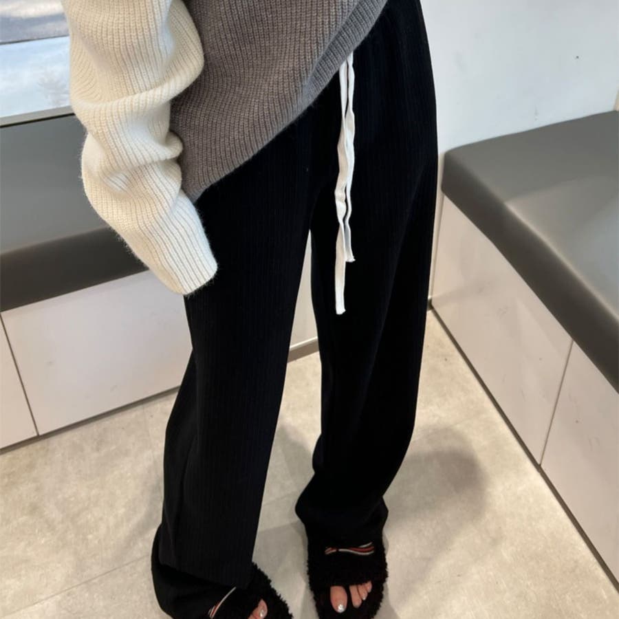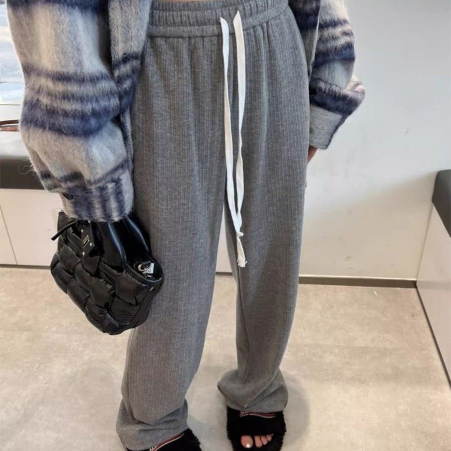 裏起毛 ワイドパンツ リブワイドパンツ