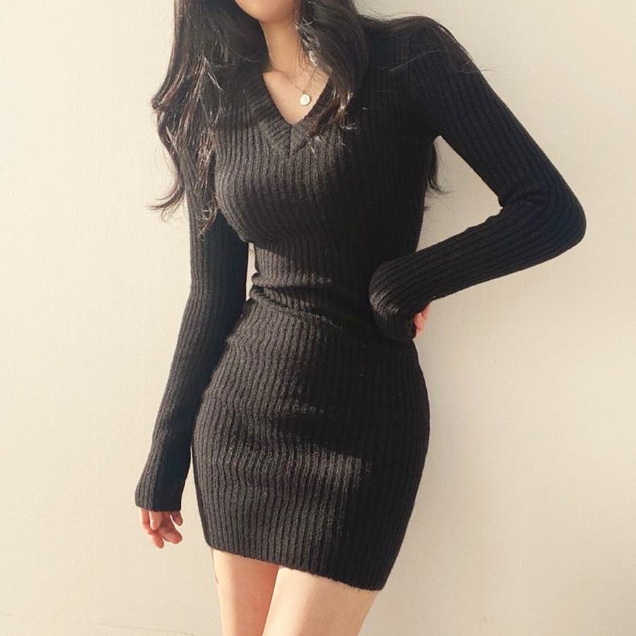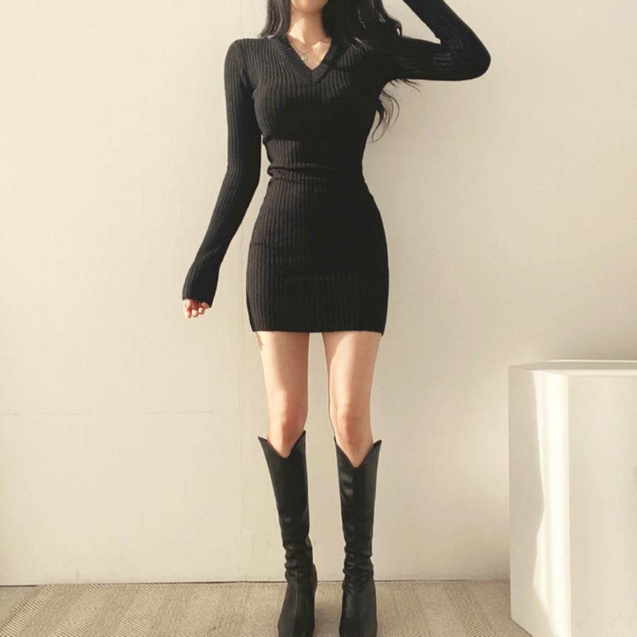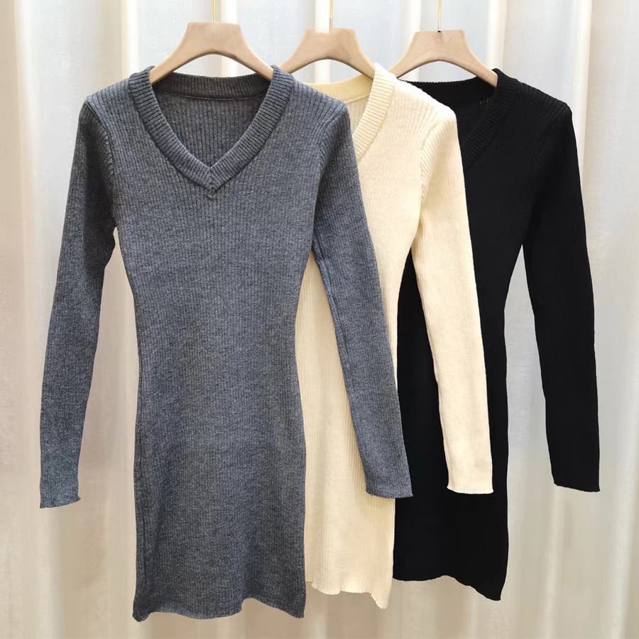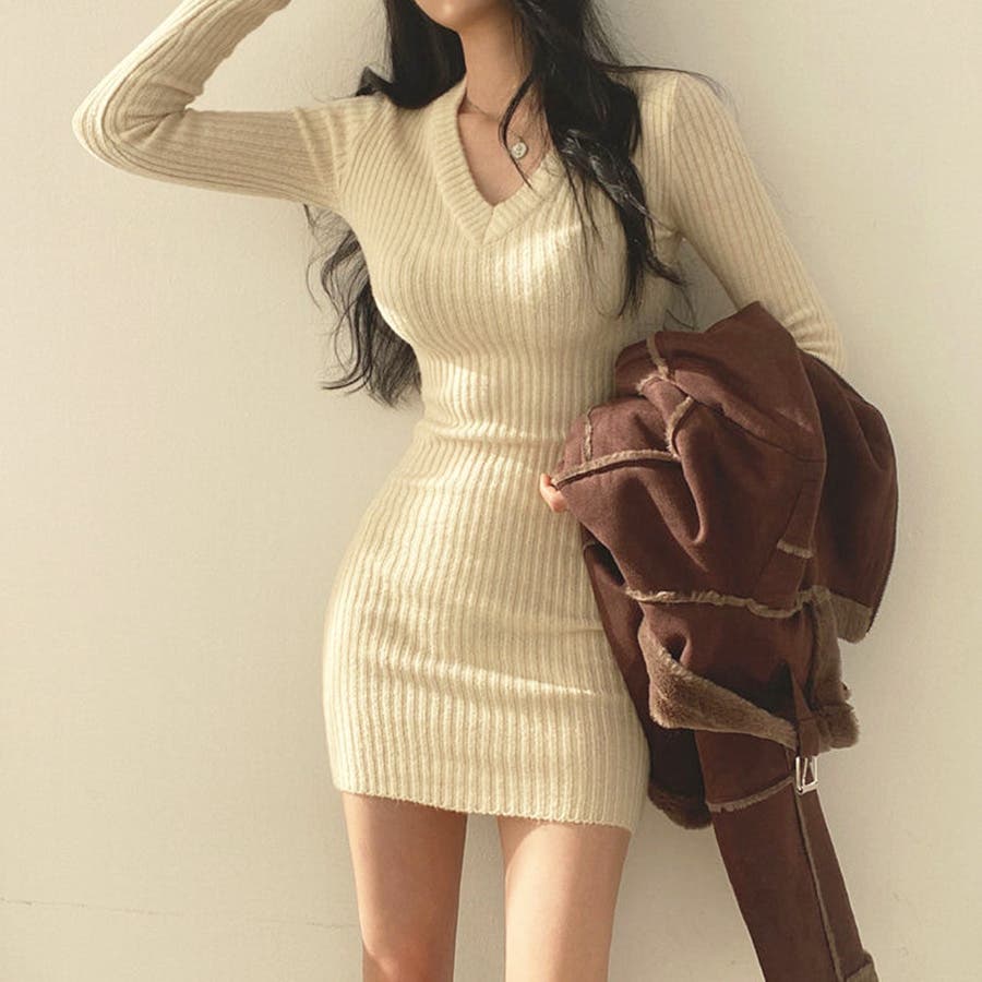 【ライトベージュ】ニットワンピース スリムフィット韓国 レディース