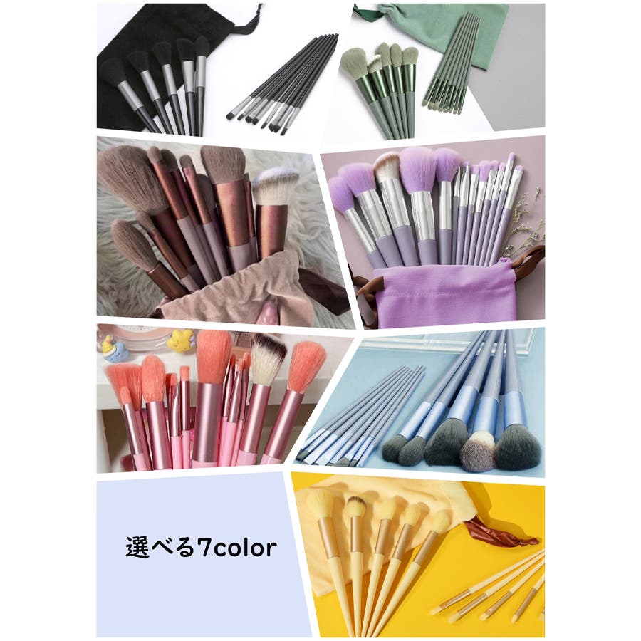1.バウダーブラシ2.チークブラシ3.ファンデーションブラシ4.ハイライトブラシ5.シェーディングブラシ(大)6.アイシャドウブラシ(小)7.下まぶたブラシ8.ブレンディングブラシ9.コンシーラーブラシ10.シェーディングブラシ(小)11.アイラインブラシ12.リップブラシ13.アイブロウブラシ