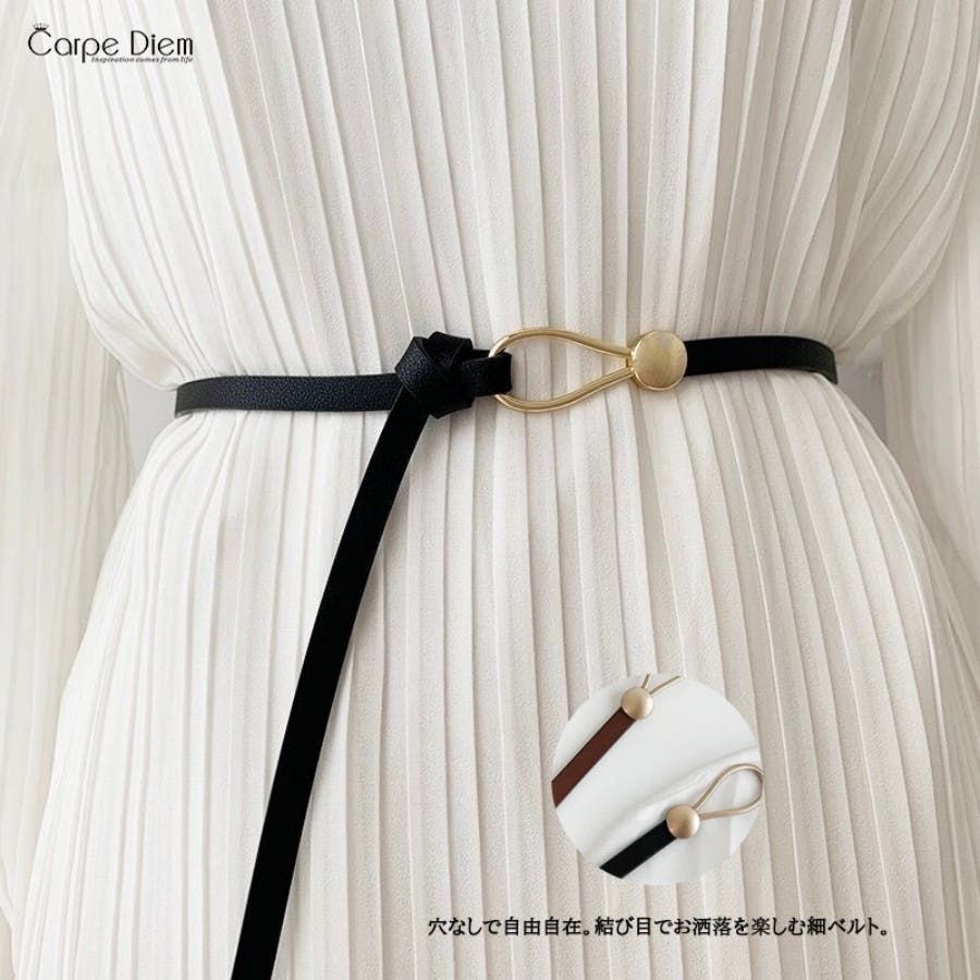 穴なしで自由に長さ調整できる、結び目デザインの細ベルト✨