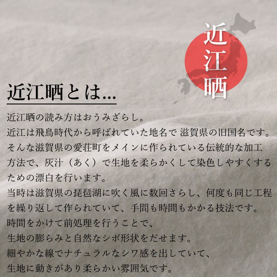 滋賀県で作られている伝統的な加工方法で、灰汁(あく)で生地を柔らかくして、染色しやすくするための漂白の工程を繰り返して作られた生地です。