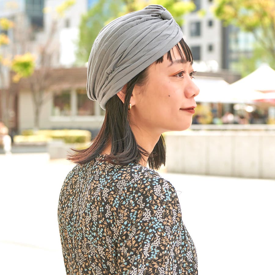 ターバンを巻いたようなデザインが個性的なキャップ。