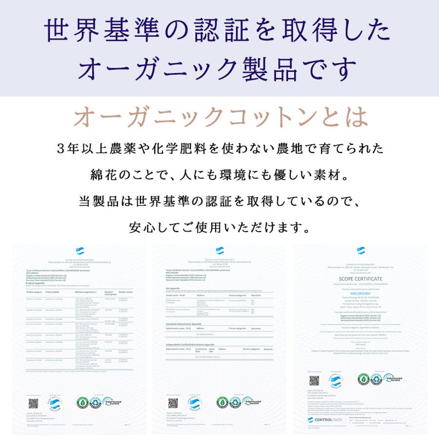 ※認証機関より認証されたオーガニックコットンを使用しております。