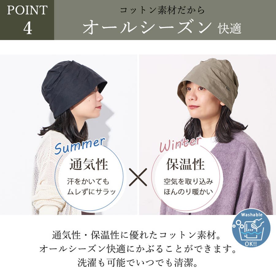 発汗吸収性、保湿性、通気性も抜群。洗濯も可能で、春夏秋冬、一年中季節問わず快適にかぶれます。