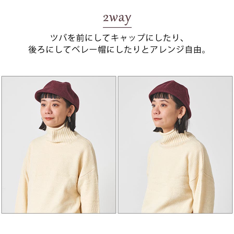 ツバを前にしてキャップにしたり、後ろにしてベレー帽にしたりとアレンジ自由。