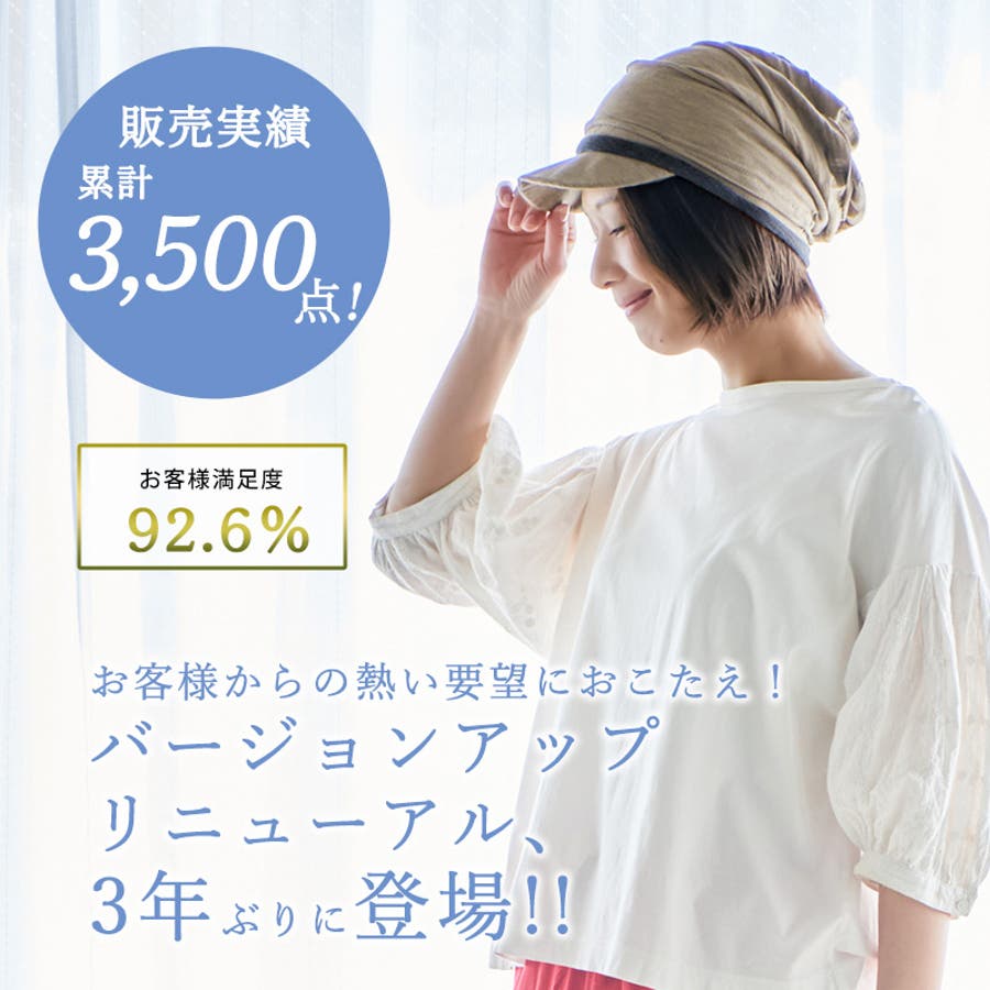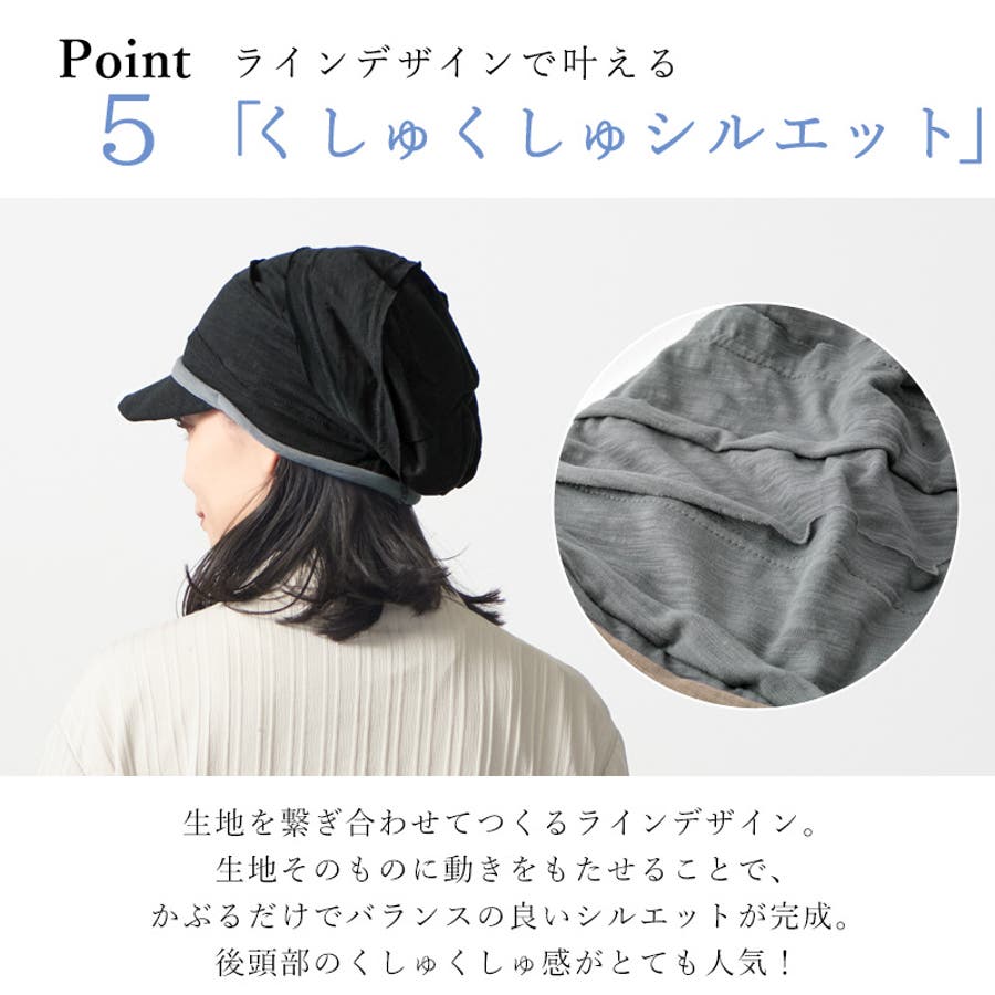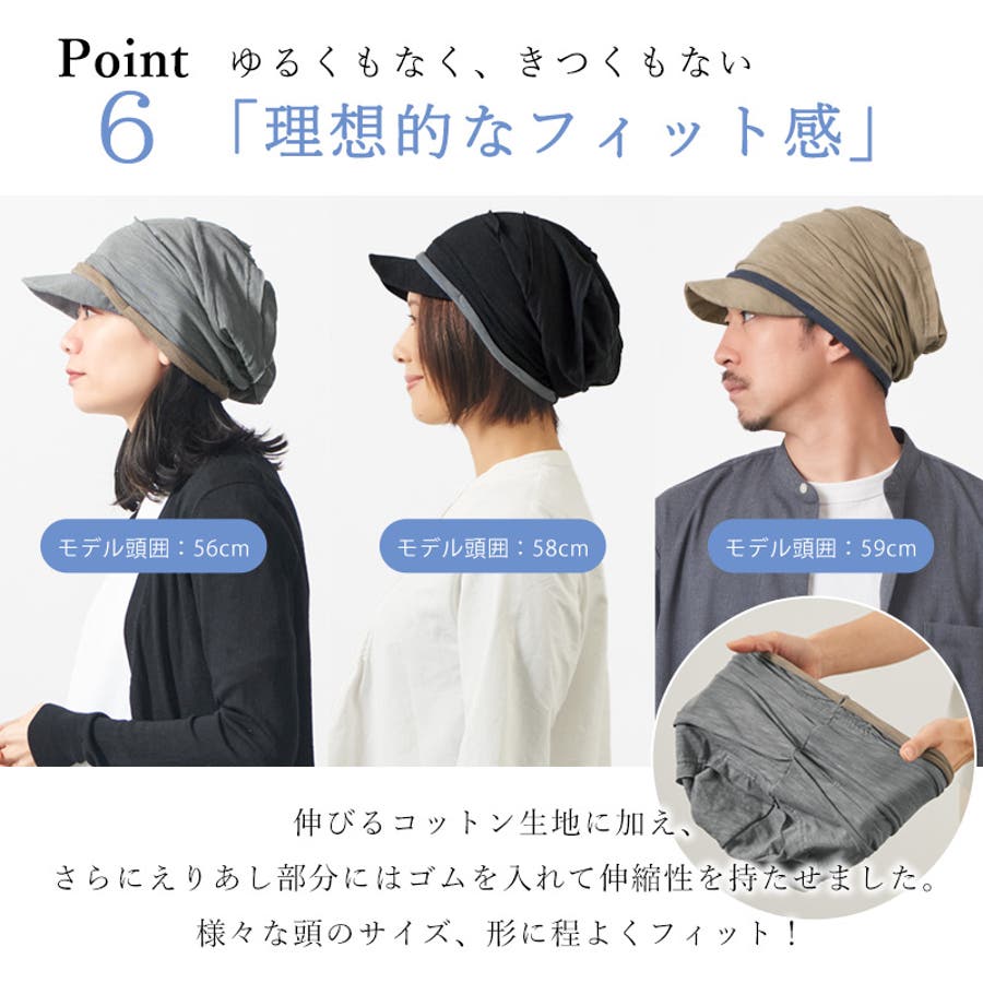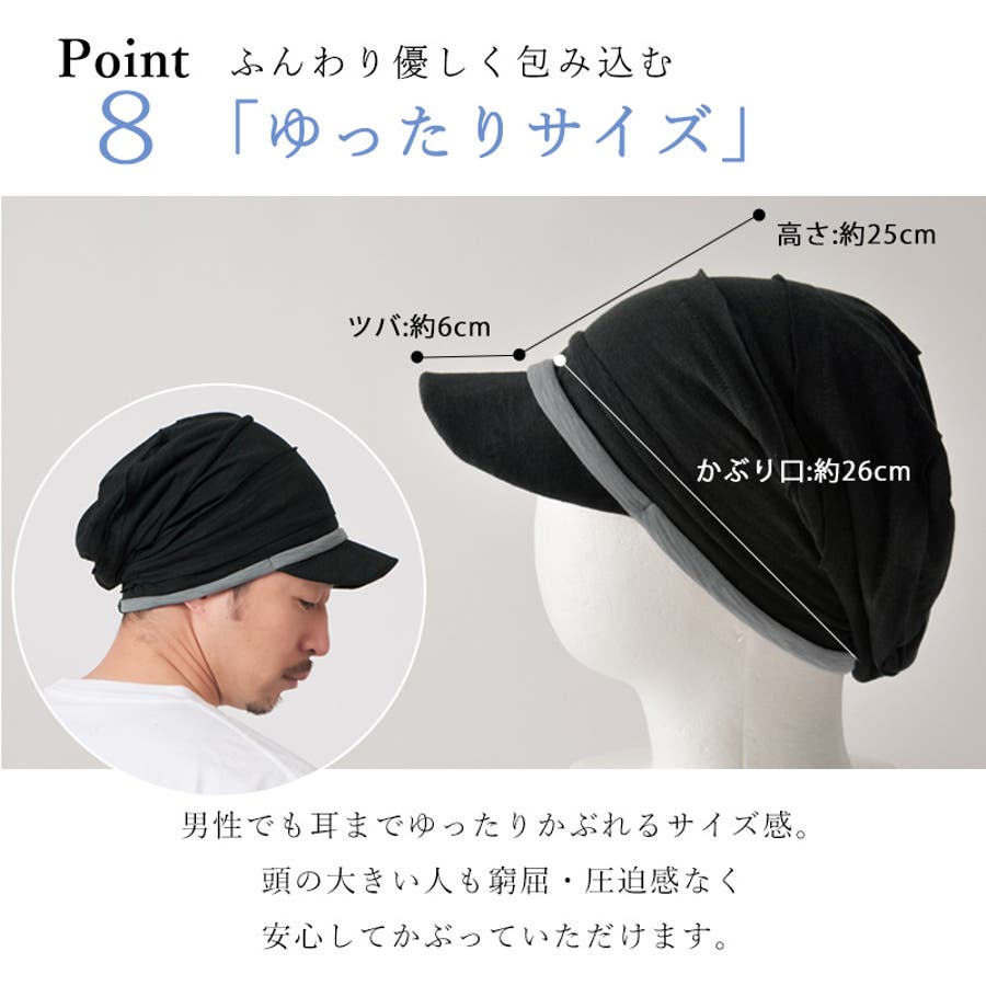 すっぽりと耳までかぶることができるサイズ感で、つば付きなので外出にもぴったり。