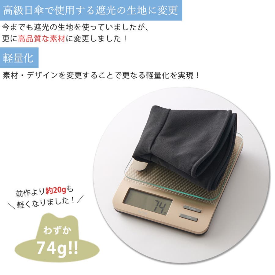 1.ツバ裏に特殊三層ラミネート素材(遮光率99.99%)使用。