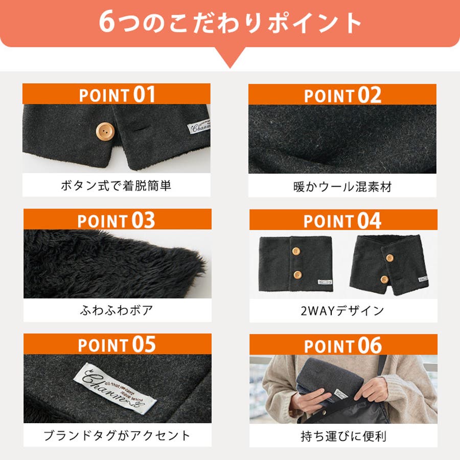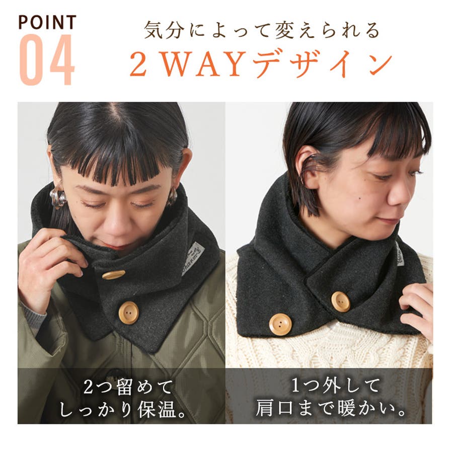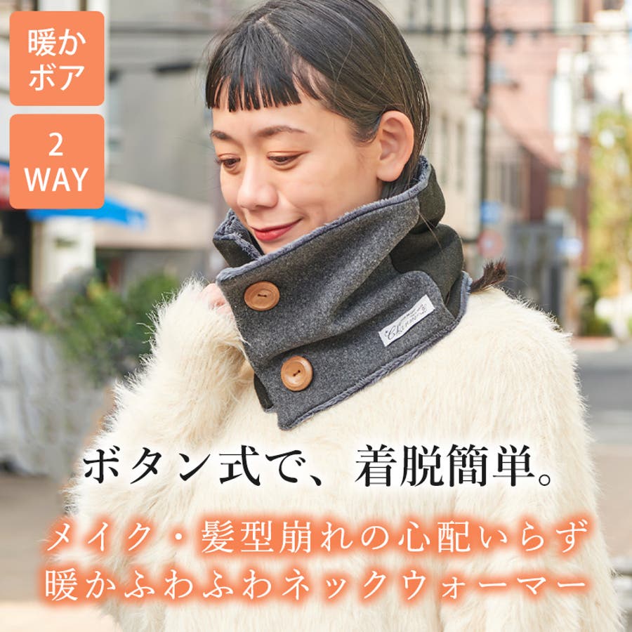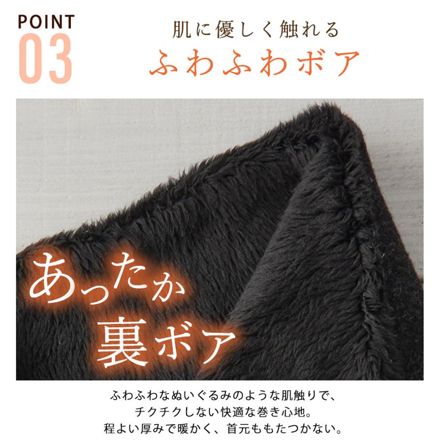 内側は肌触りの良いボア素材でボリューム感があり、しっかり首周りを暖めてくれます。
