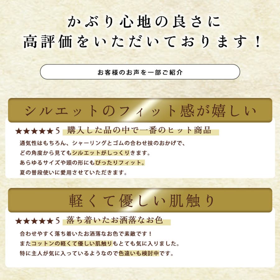 通常のサイズより少し大きめに作り、後頭部にゴムが入っているのでフィットしてかぶれるサイズ感。
