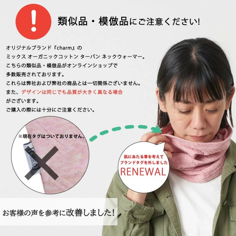 日本製のオーガニックコットンターバン、ネックウォーマー。