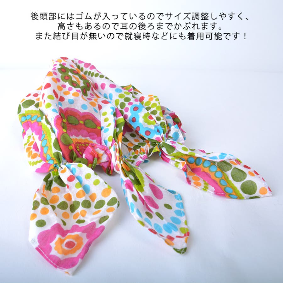 後頭部に結び目が多いバンダナキャップでしたがこれはゴムなので結び目がなく就寝時などにもOK。