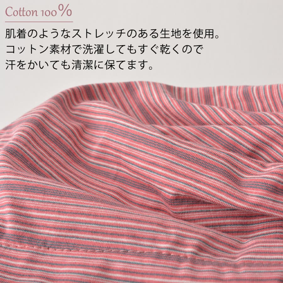 コットン素材で洗濯してもすぐ乾くので汗をかいても清潔に保てます。