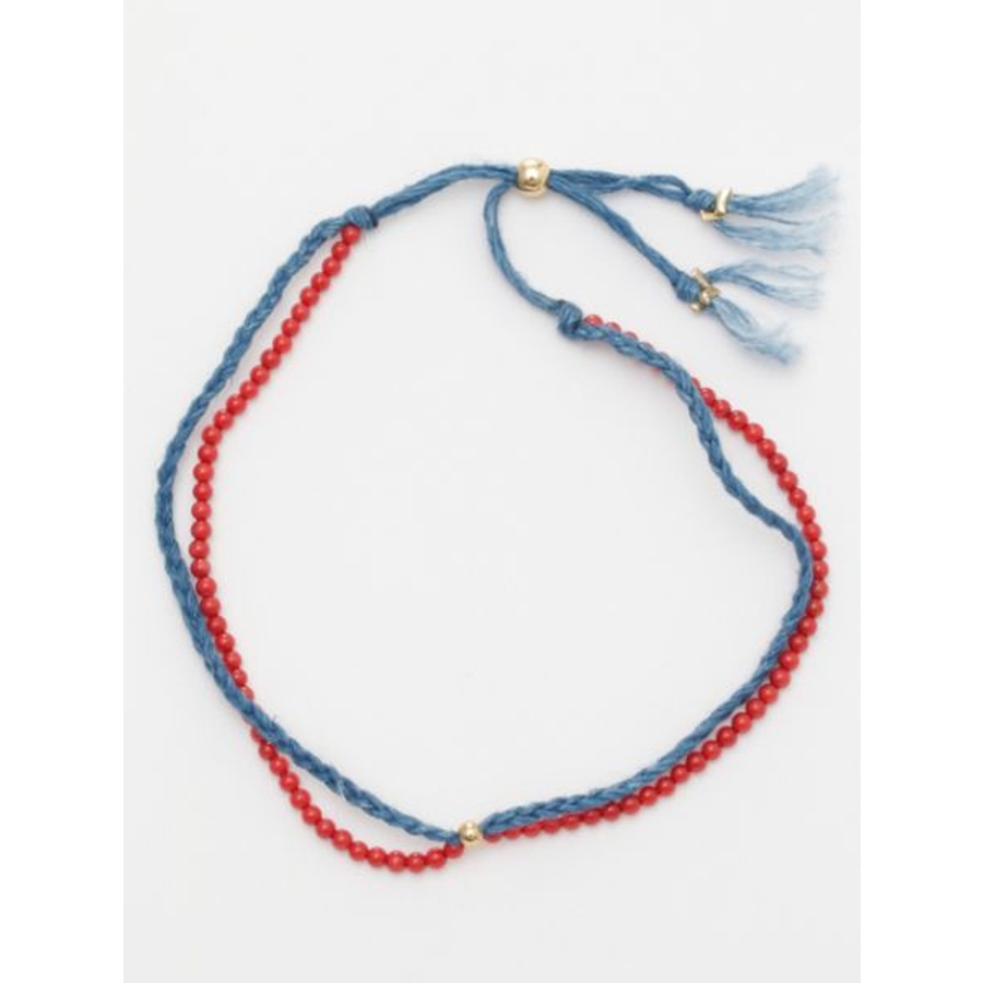 四国・徳島の藍農家にて本藍染めを施した、国産の綿麻紐アンクレット。重ね付けは勿論、男女問わず身に付けられるデザインなので、大切な方と色違いで身に着けるのもお勧めです。※レッドコーラルは着色加工を施しております。