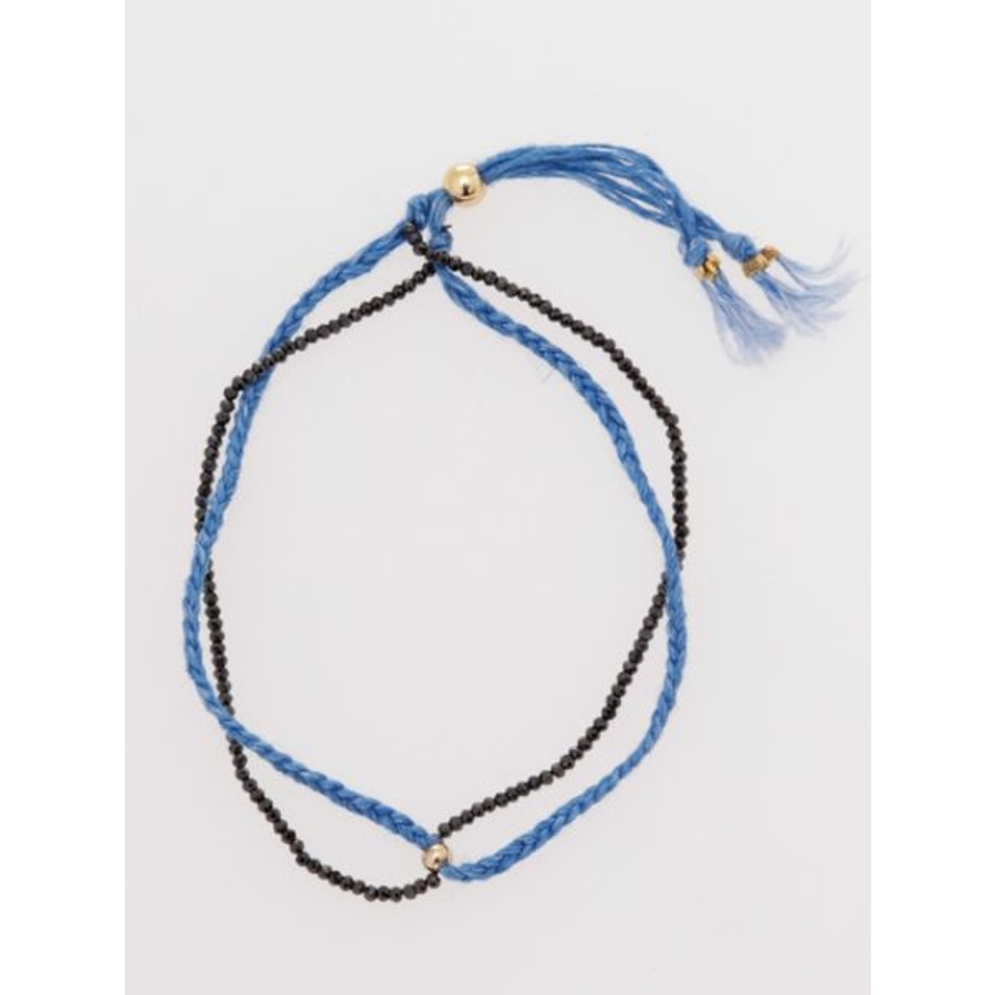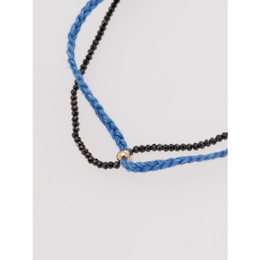 四国・徳島の藍農家にて本藍染めを施した、国産の綿麻紐を使用しました。高品質のブラックスピネルが上品に煌き、お足元を華やかに彩ります。