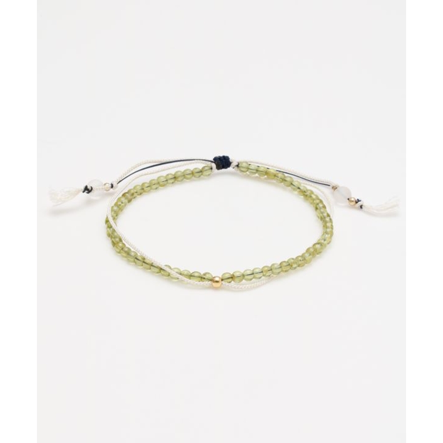 小粒の誕生石を贅沢にあしらった、老若男女問わず身に着けられるシンプルなデザインの紐アンクレット。京都組紐を用いた滑らかな着け心地が特徴で、お好みで内周のサイズを調整出来ます。