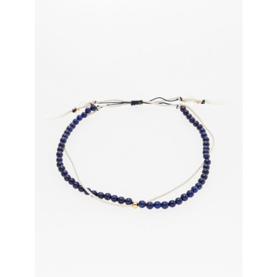 小粒の誕生石を贅沢にあしらった、老若男女問わず身に着けられるシンプルなデザインの紐アンクレット。京都組紐を用いた滑らかな着け心地が特徴で、お好みで内周のサイズを調整出来ます。