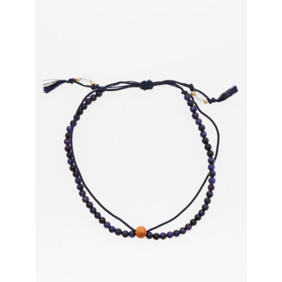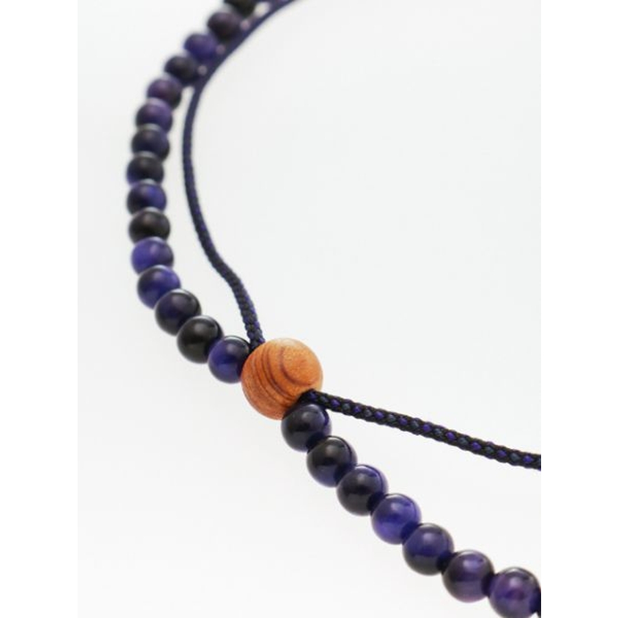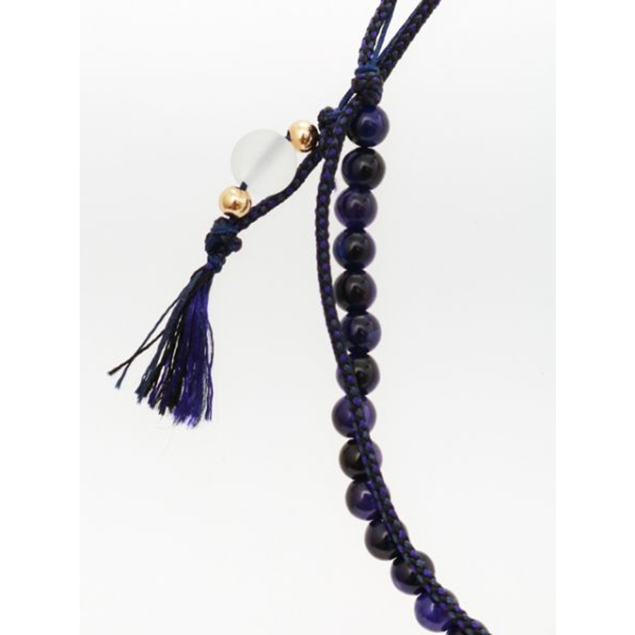 小粒のタイガーアイを基調にした、老若男女問わず身に着けられるシンプルなデザインの紐アンクレット。京都組紐を用いた滑らかな着け心地が特徴で、お好みで内周のサイズを調整出来ます。※こちらの商品は着色加工を施した天然石を使用しております。
